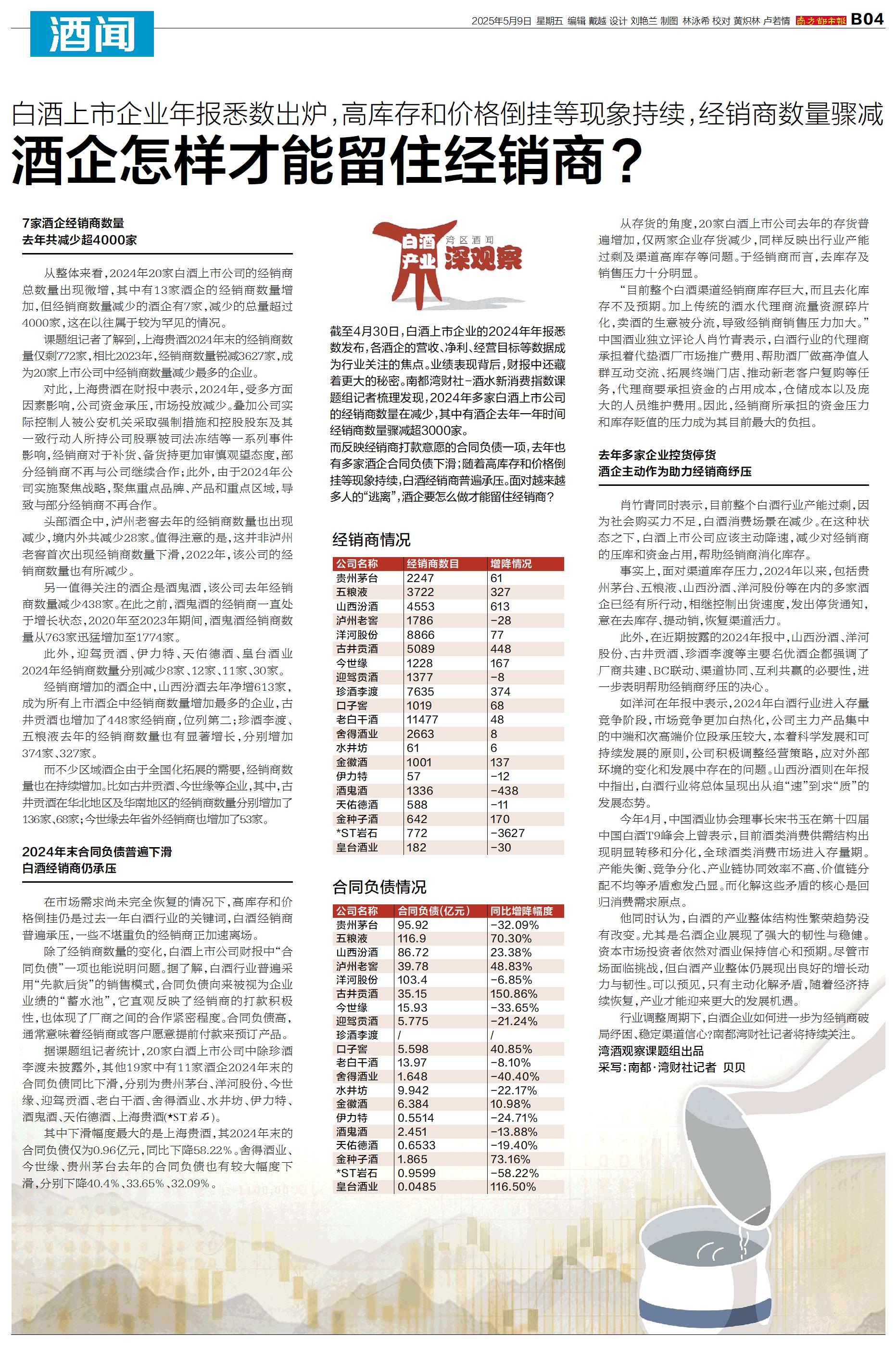 截至4月30日,白酒上市企业的2024年年报悉数发布,各酒企的营收、净利、经营目标等数据成为行业关注的焦点。业绩表现背后,财报中还藏着更大的秘密。南都湾财社-酒水新消费指数课题组记者梳理发现,20