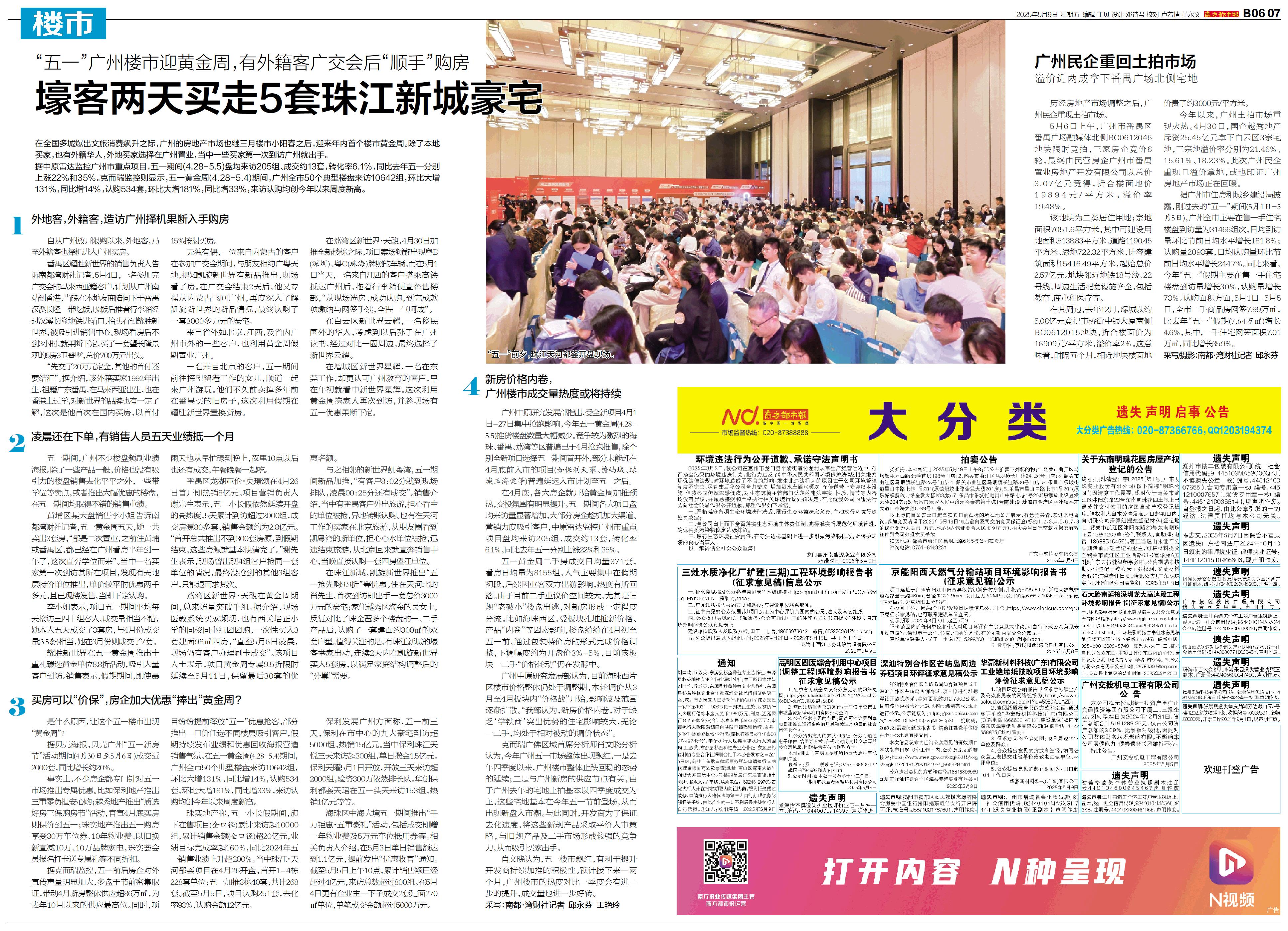 在全国多城爆出文旅消费飙升之际,广州的房地产市场也继三月楼市小阳春之后,迎来年内首个楼市黄金周。除了本地买家,也有外籍华人,外地买家选择在广州置业,当中一些买家第一次到访广州就出手。 据中原雷达