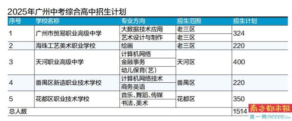 南都讯 记者程安 实习生许骞文 随着广州中考志愿填报临近,各校都加足马力开启今年的招生宣传。在中职领域,除备受关注的中职学校与本科高校“3+4”七年一体化中本贯通培养改革试点外,综合高中也陆续公布了各自的招生计划,累计招生计划超1500人(最终招生计划以教育部门发布为准),专业选择也比去年更加丰富。