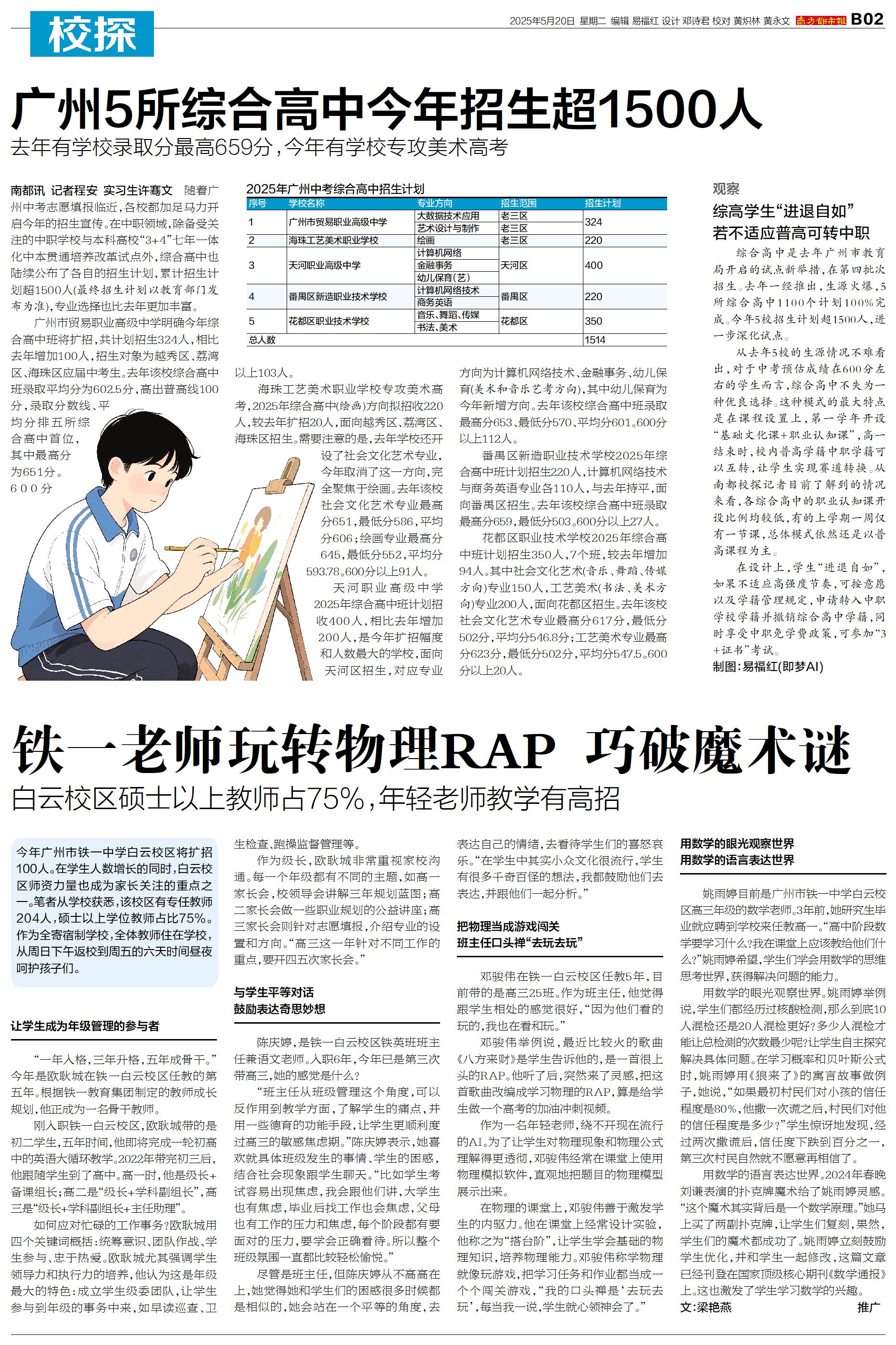 南都讯 记者程安 实习生许骞文 随着广州中考志愿填报临近,各校都加足马力开启今年的招生宣传。在中职领域,除备受关注的中职学校与本科高校“3+4”七年一体化中本贯通培养改革试点外,综合高中也陆续公布