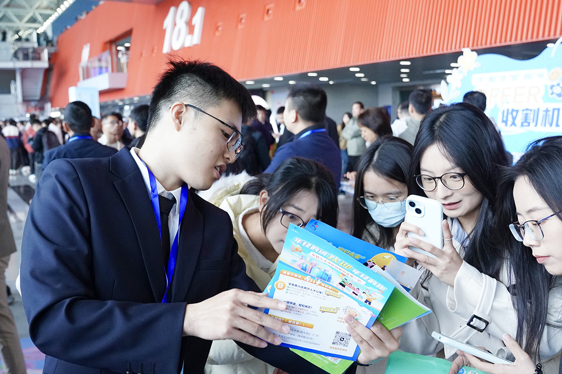 3月16日,在广交会展馆里,“百万英才汇南粤”春季大型综合招聘会现场热闹非凡。南沙“湾区之心,未来之城”主题展区前,从武汉赶来的华中科技大学硕士生李同学刚投出了应聘简历,他瞄准的是中科宇航的工程师岗位,直言南沙的相关政策减轻了异地求职压力。“南沙连面试住宿和路费都包了,这样的诚意很难不心动!”