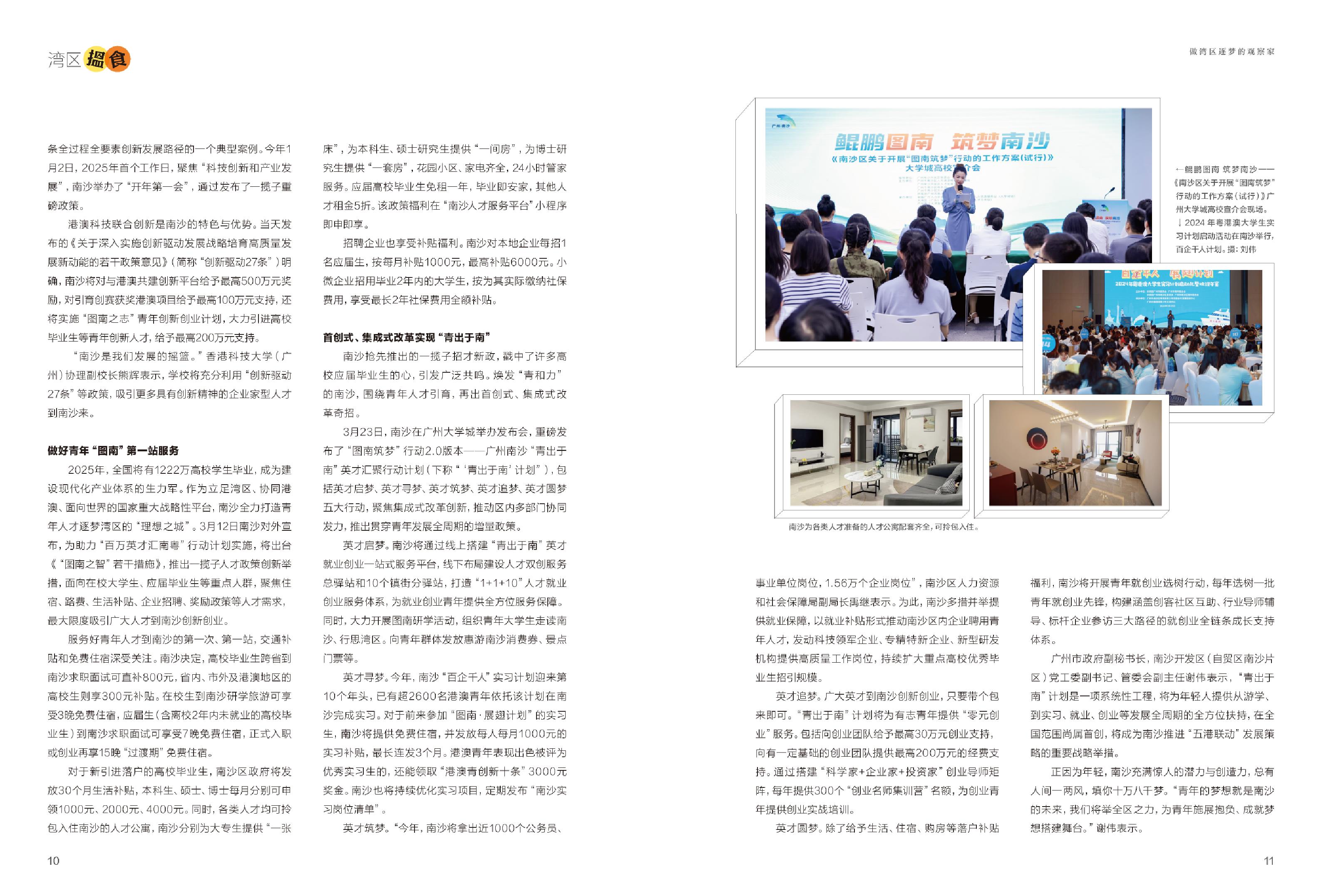 2024年,南沙首次将“打造青年发展型城市(县域)”写入区政府工作报告,发布了“大湾区青年活力之城”三年行动计划和“图南筑梦”计划,从顶层设计上为人才发展描绘“路线图”。