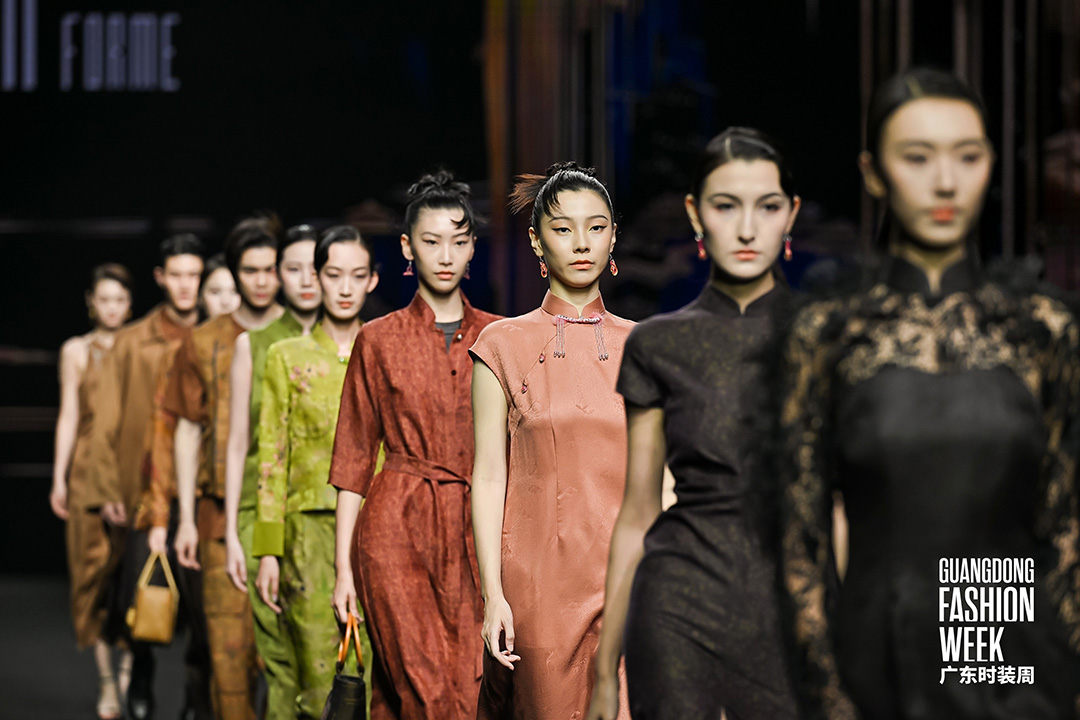 云纱星韵携手设计师邵诗茹打造的新中式服装作品登上2024广东时装周-春季主会场。