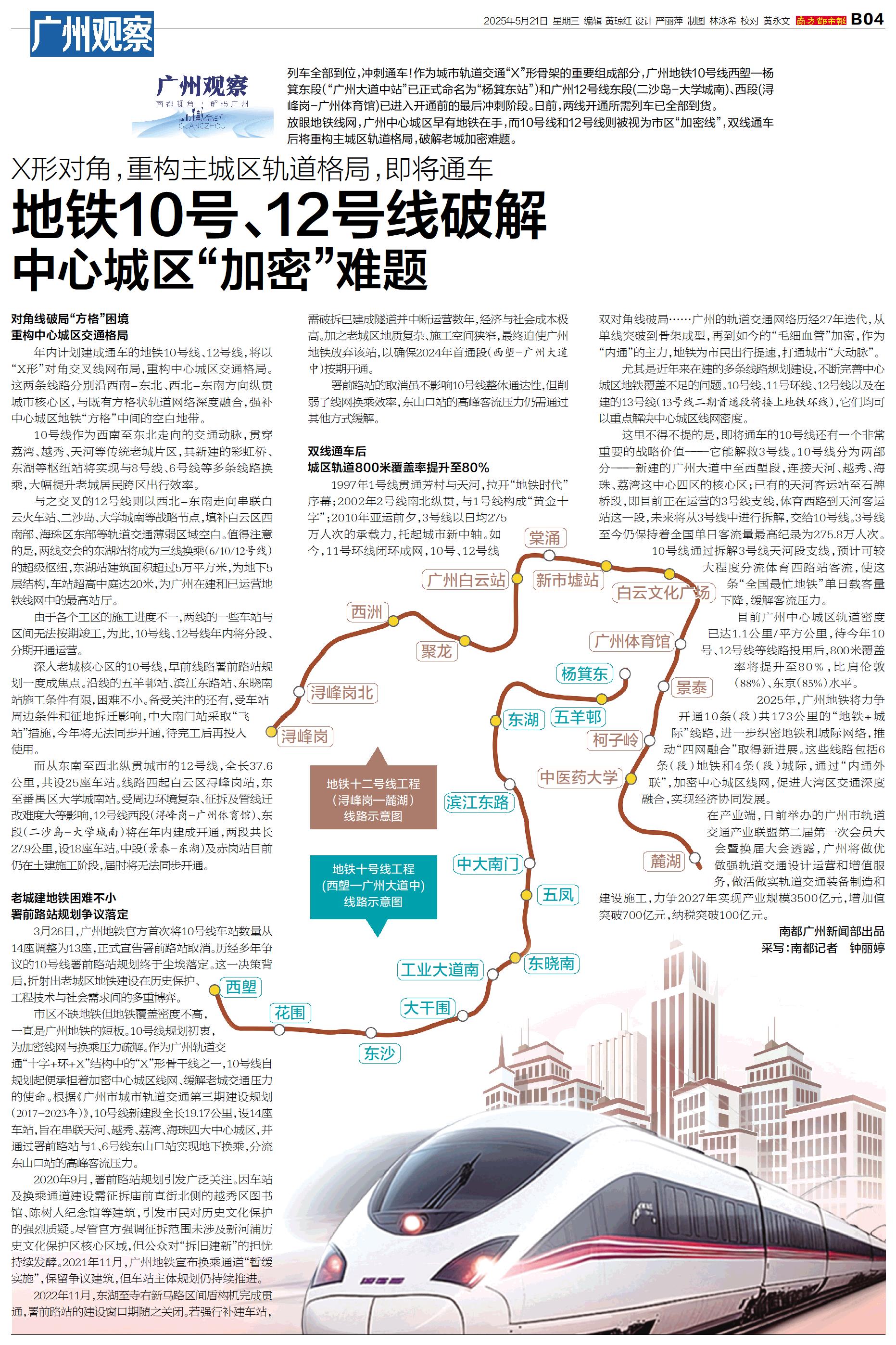 放眼地铁线网,广州中心城区早有地铁在手,而10号线和12号线则被视为市区“加密线”,双线通车后将重构主城区轨道格局,破解老城加密难题。