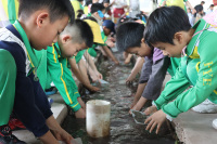 一众学生在云纱星韵研学,体验香云纱染整工艺。 云纱星韵携手设计师邵诗茹打造的新中式服装作品登上2024广东时装周-春季主会场。 工人在云纱星