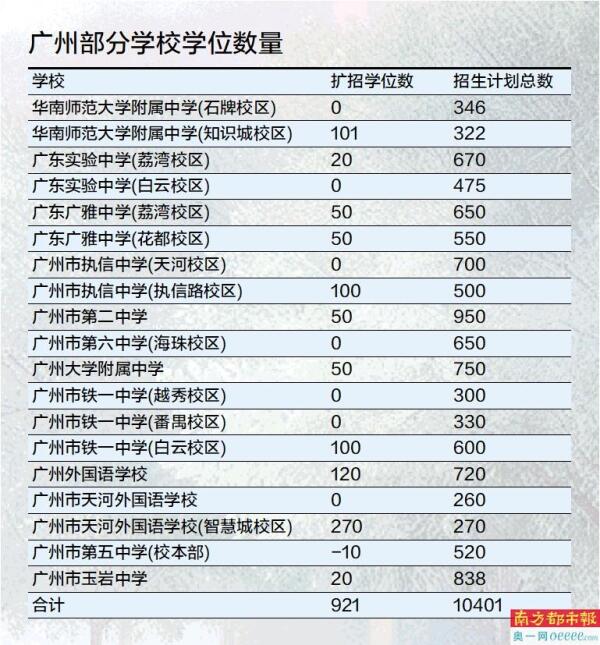 2025年,上述学校(校区)招生计划总数比2024年增加了920个学位。其中,除了广州五中(校本部)缩招10人、广州六中(海珠校区)计划不变外,其他学校都有不同程度的扩招。