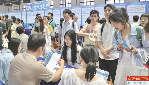 此次招聘会聚焦“百千万工程”战略部署,在南方医科大学会场,特设县域医疗专区,来自县区级及基层医疗机构占比达66%,其中“大学生乡村医生专项计划”以“入编保障+全科培养+职业发展”三重优势,吸引了不少青年学子驻足咨询报名,成为助力乡村振兴的“强磁场”。