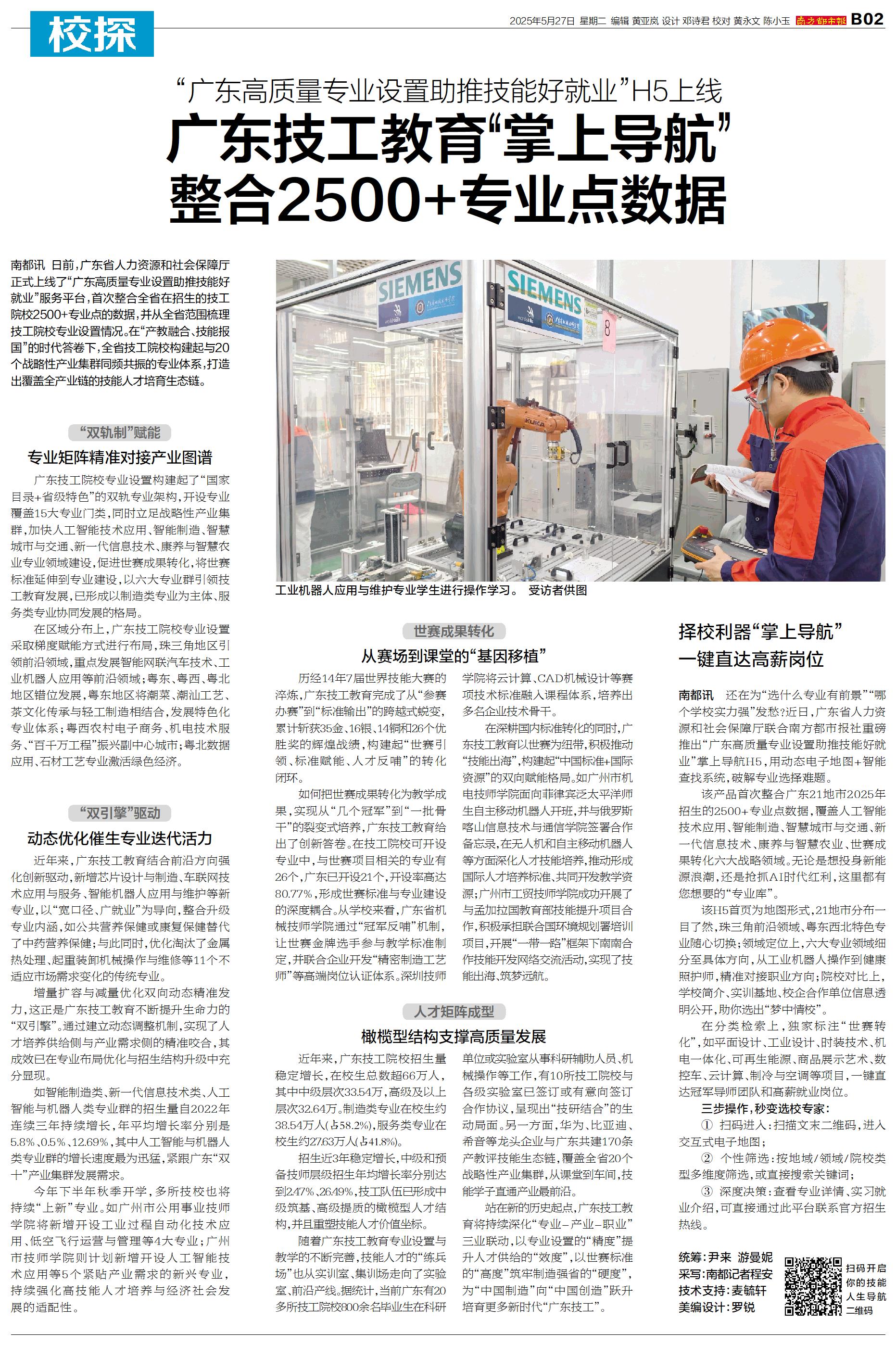 南都讯 还在为“选什么专业有前景”“哪个学校实力强”发愁?近日,广东省人力资源和社会保障厅联合南方都市报社重磅推出“广东高质量专业设置助推技能好就业”掌上导航H5,用动态电子地图+智能查找系统,破
