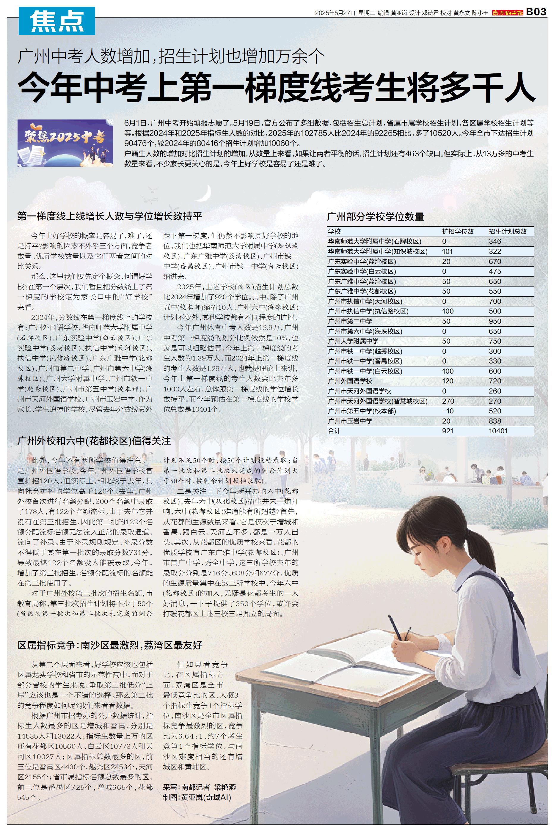 6月1日,广州中考开始填报志愿了。5月19日,官方公布了多组数据,包括招生总计划,省属市属学校招生计划,各区属学校招生计划等等。根据2024年和2025年指标生人数的对比,2025年的102785