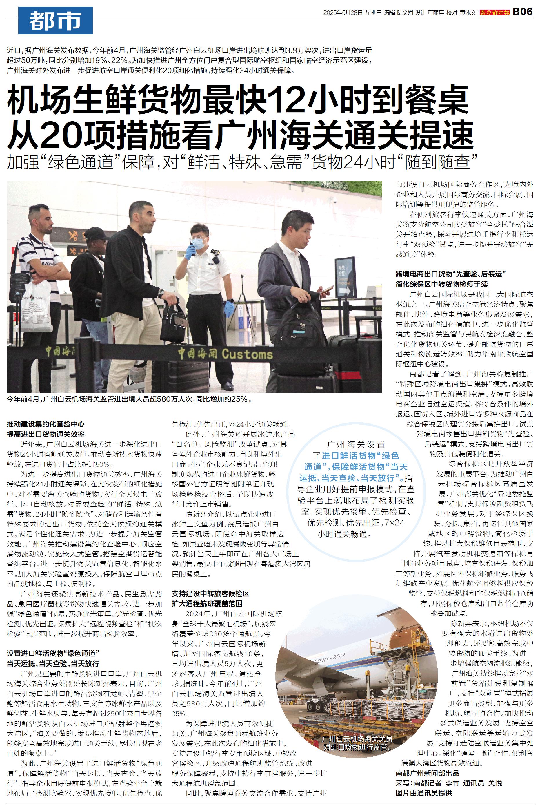 机场生鲜货物最快12小时到餐桌 从20项措施看广州海关通关提速