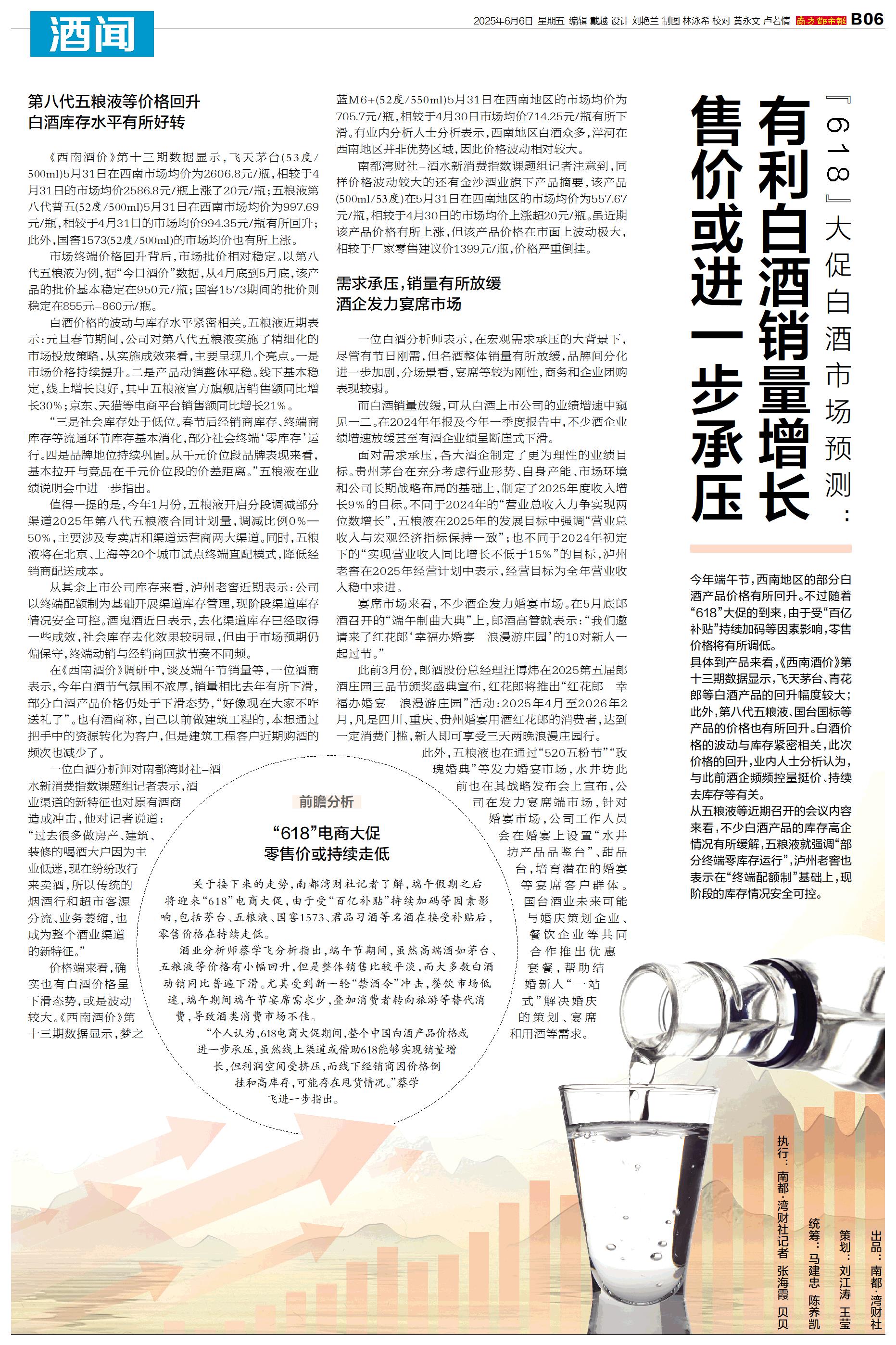 今年端午节,西南地区的部分白酒产品价格有所回升。不过随着“618”大促的到来,由于受“百亿补贴”持续加码等因素影响,零售价格将有所调低。 具体到产品来看,《西南酒价》第