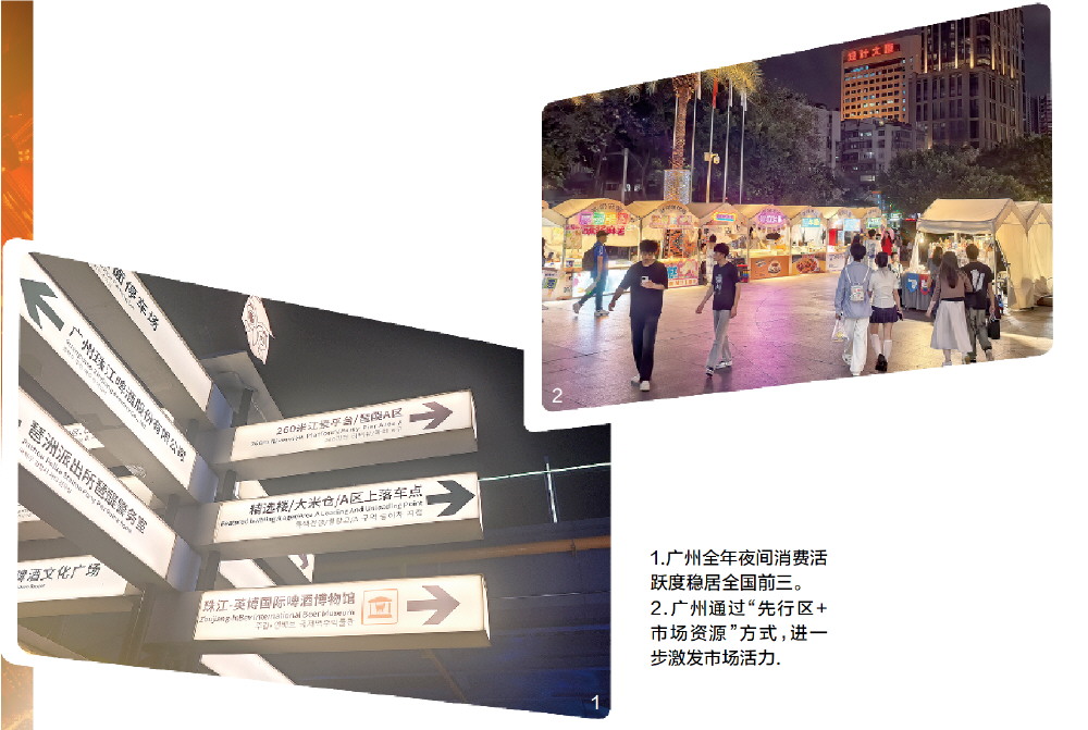 以先行区为载体,广州也在优化群众性活动审批管理、外摆审核流程、户外广告和招牌设置管理、营业性演出审批管理等多个方面。如推行《广东省住房和城乡建设系统行政处罚免罚清单》《广州市市场轻微违法经营行为免处罚免强制清单》,做到宽严相济、法理相融、罚教结合,让行政执法既有力度又有温度。落实属地管理责任和部门监管责任,规范文化和旅游市场秩序,维护消费者合法权益,营造诚信守法、文明有序、安心舒心、绿色健康的消费氛围,促进夜经济持续发展。