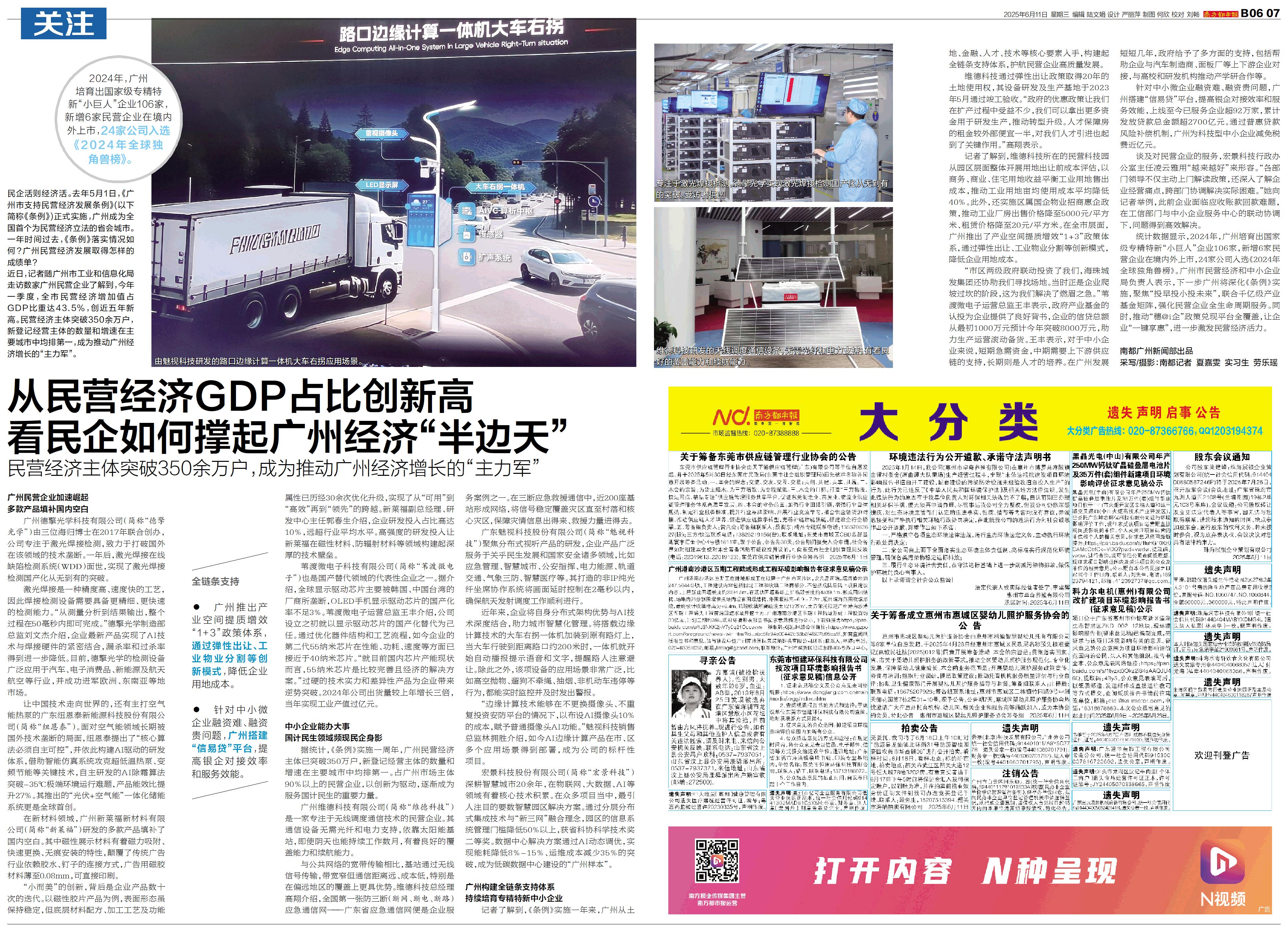 2024年,广州培育出国家级专精特新“小巨人”企业106家,新增6家民营企业在境内外上市,24家公司入选《2024年全球独角兽榜》。 民企活则经济活。去年5月1日,《广州市支持民营经济发展条例》