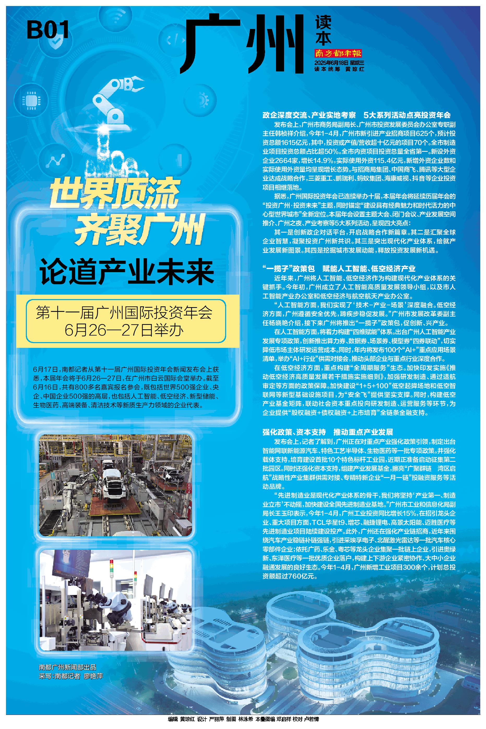 6月17日,南都记者从第十一届广州国际投资年会新闻发布会上获悉,本届年会将于6月26—27日,在广州市白云国际会堂举办。截至6月16日,共有800多名嘉宾报名参会,既包括世界500强企业、央企、中