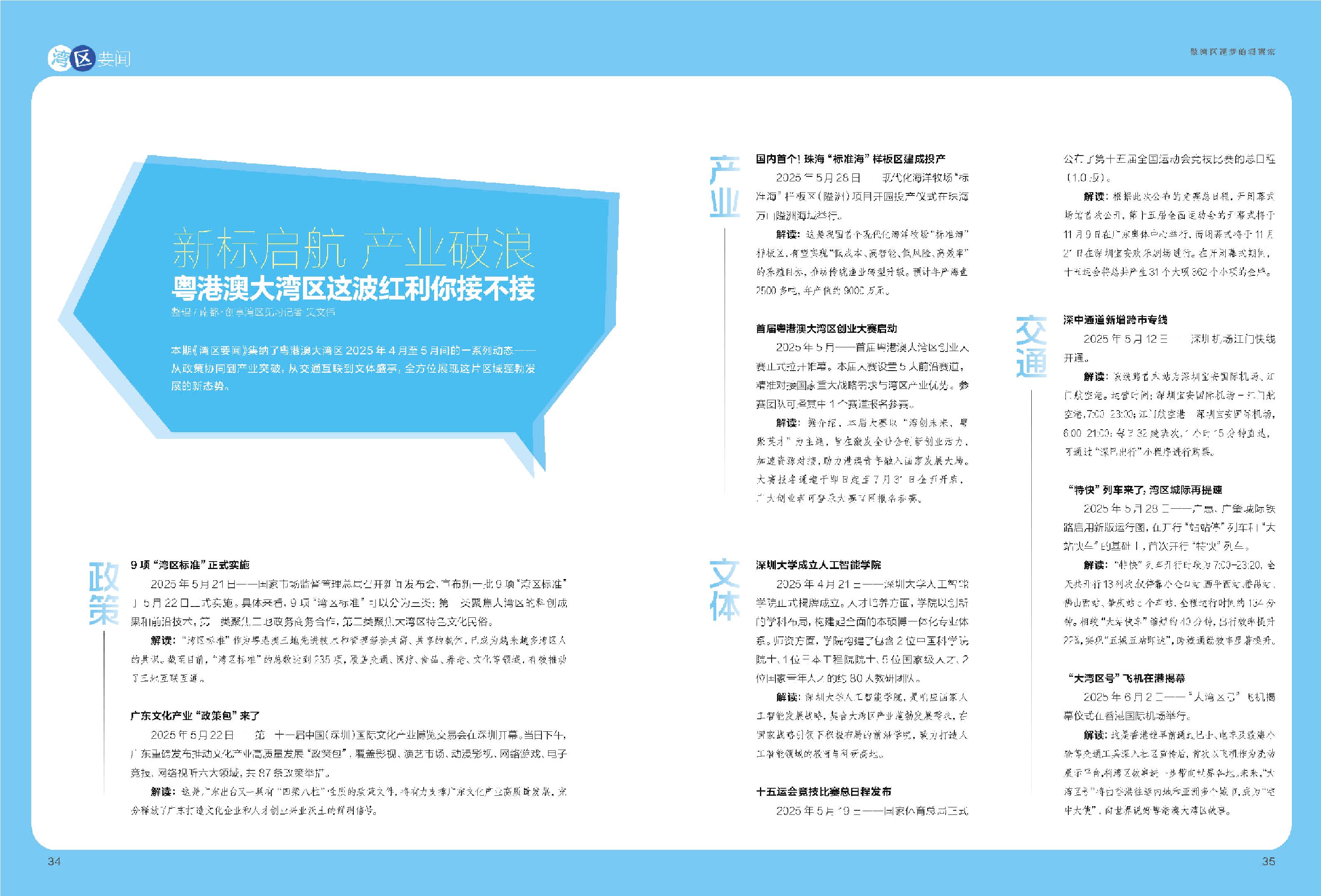 整理 / 南都·创享湾区见习记者 吴文伟 本期《湾区要闻》集纳了粤港澳大湾区2025年4月至5月间的一系列动态——从政策协同到产业突破,从交通互联到文体盛事,全方位展现这片区域蓬勃发展的新态