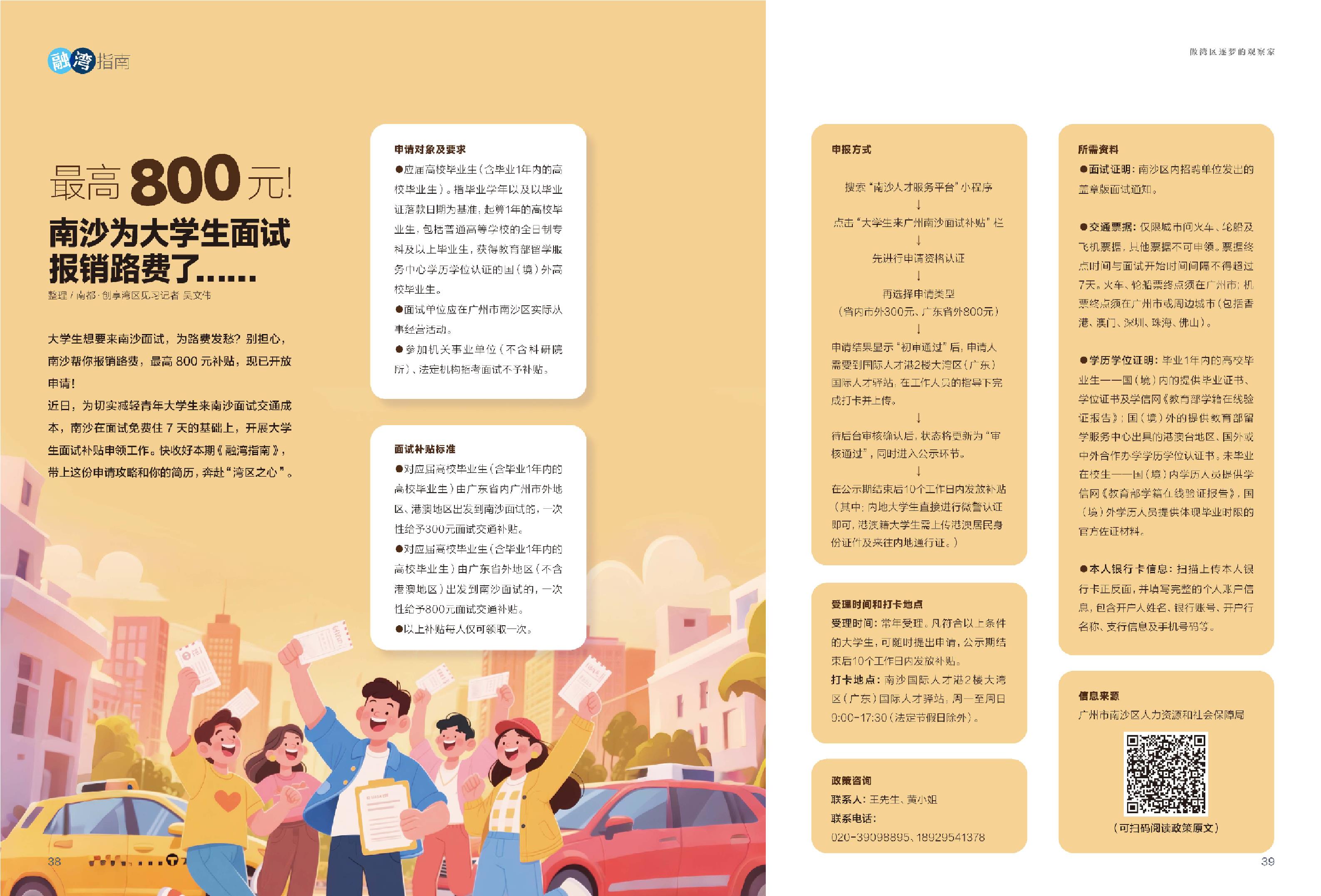可扫码阅读政策原文 整理 / 南都·创享湾区见习记者 吴文伟 大学生想要来南沙面试,为路费发愁?别担心,南沙帮你报销路费,最高800元补贴,现