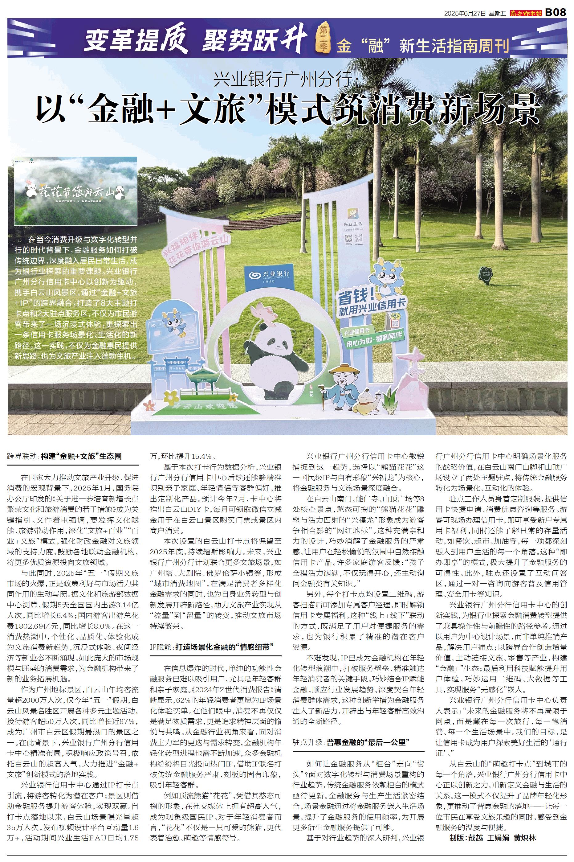 在当今消费升级与数字化转型并行的时代背景下,金融服务如何打破传统边界,深度融入居民日常生活,成为银行业探索的重要课题。兴业银行广州分行信用卡中心以创新为驱动,携手白云山风景区,通过“金融+文旅+I