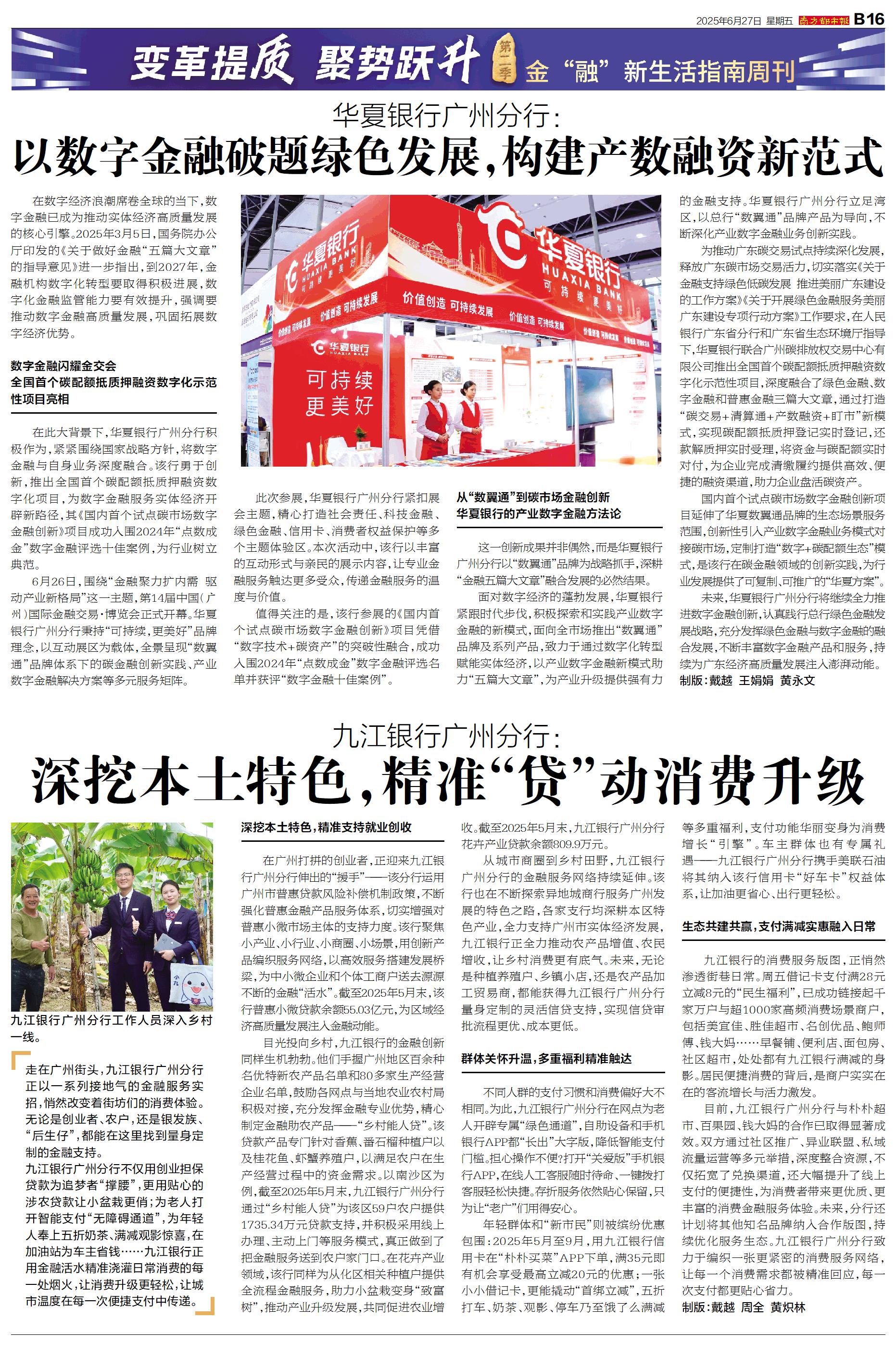 走在广州街头,九江银行广州分行正以一系列接地气的金融服务实招,悄然改变着街坊们的消费体验。无论是创业者、农户,还是银发族、“后生仔”,都能在这里找到量身定制的金融支持。 九江银行广州分行不仅用创