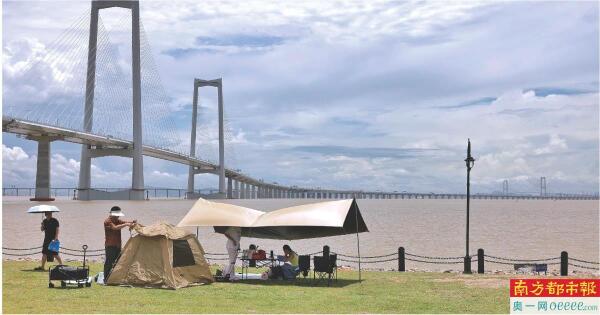 2025年6月30日,在中山市湾区未来科技城对出的海边,远处是深中通道的中山大桥。