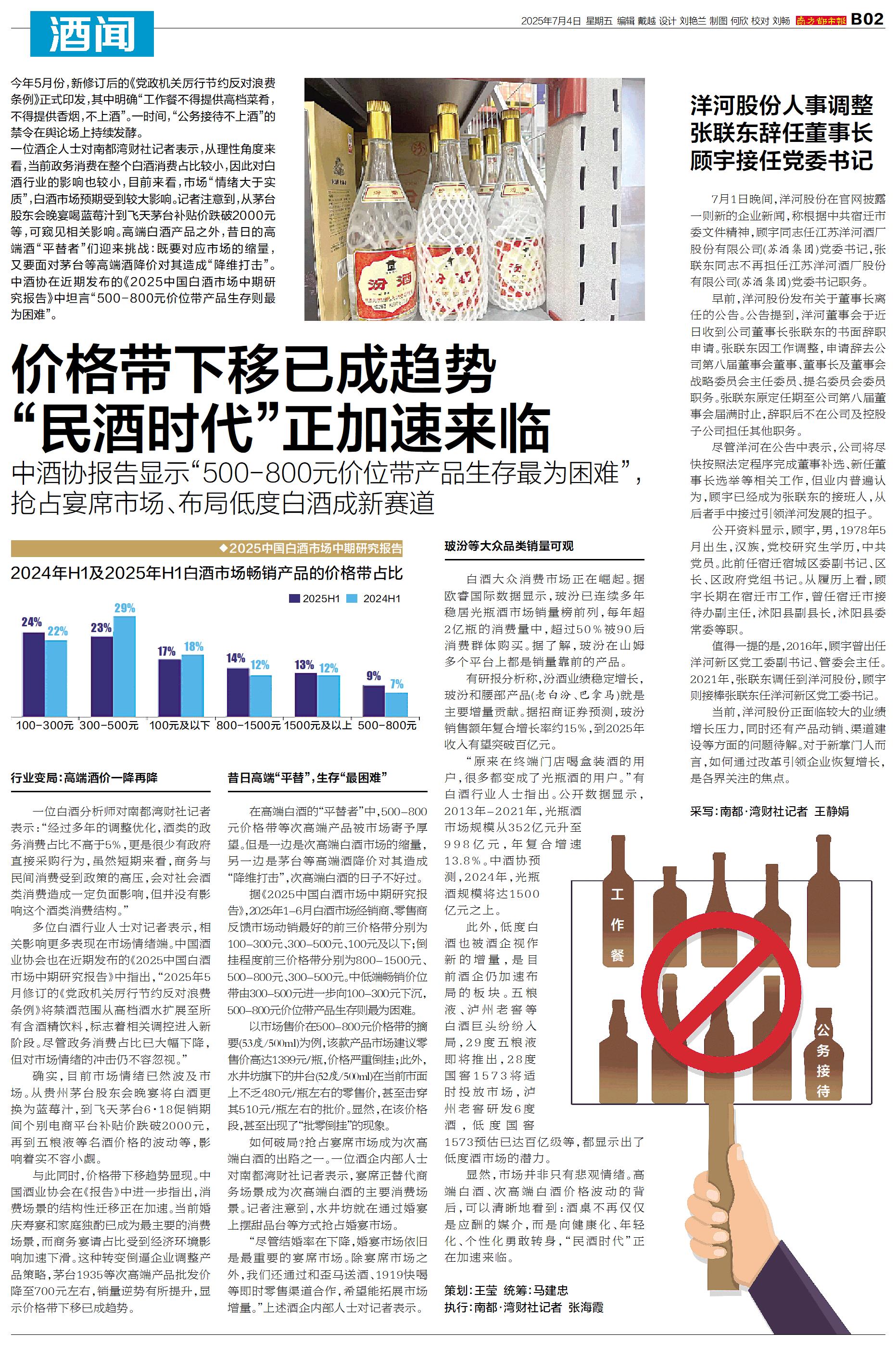洋河股份人事调整 张联东辞任董事长 顾宇接任党委书记