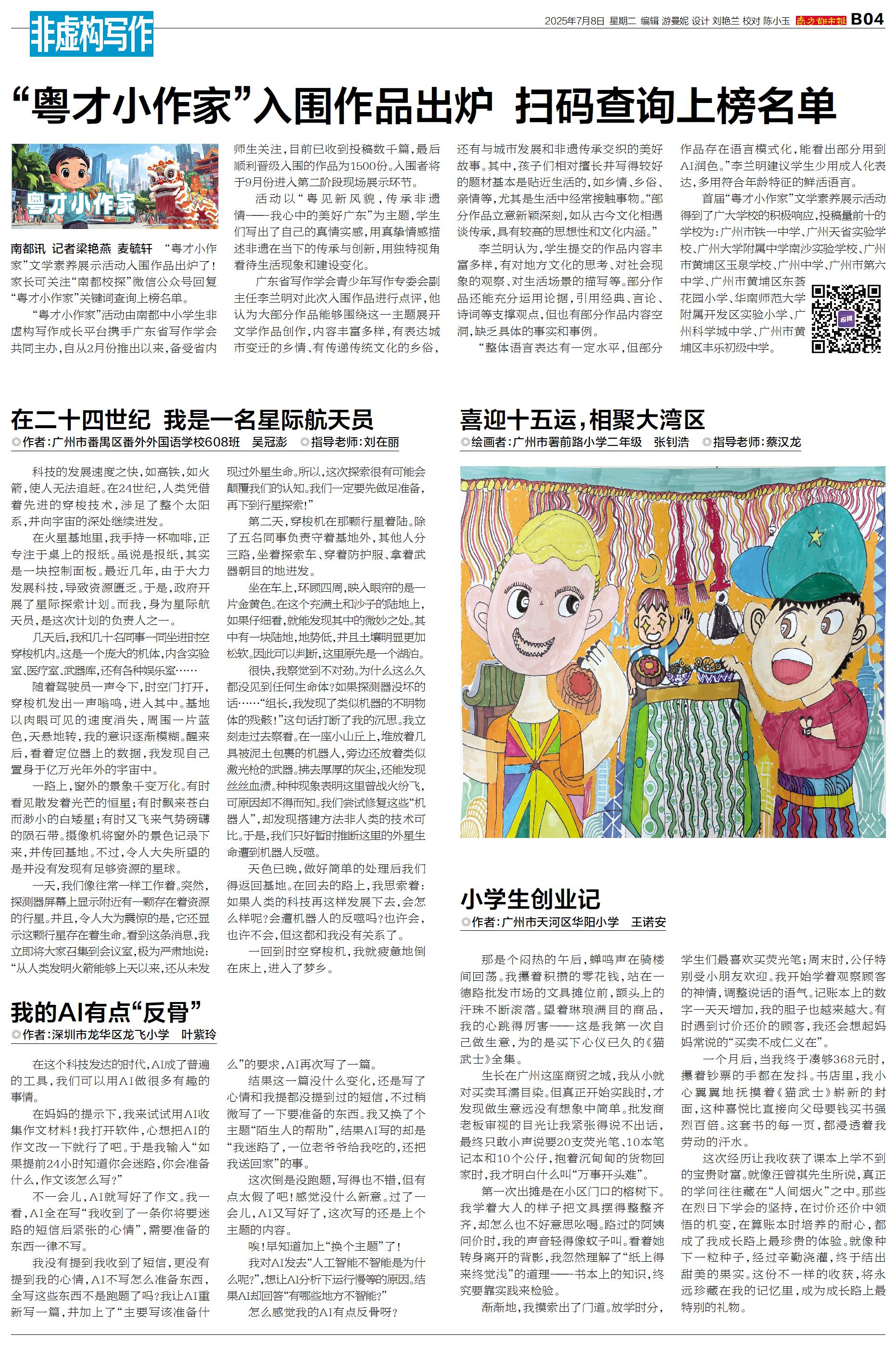“粤才小作家”入围作品出炉 扫码查询上榜名单