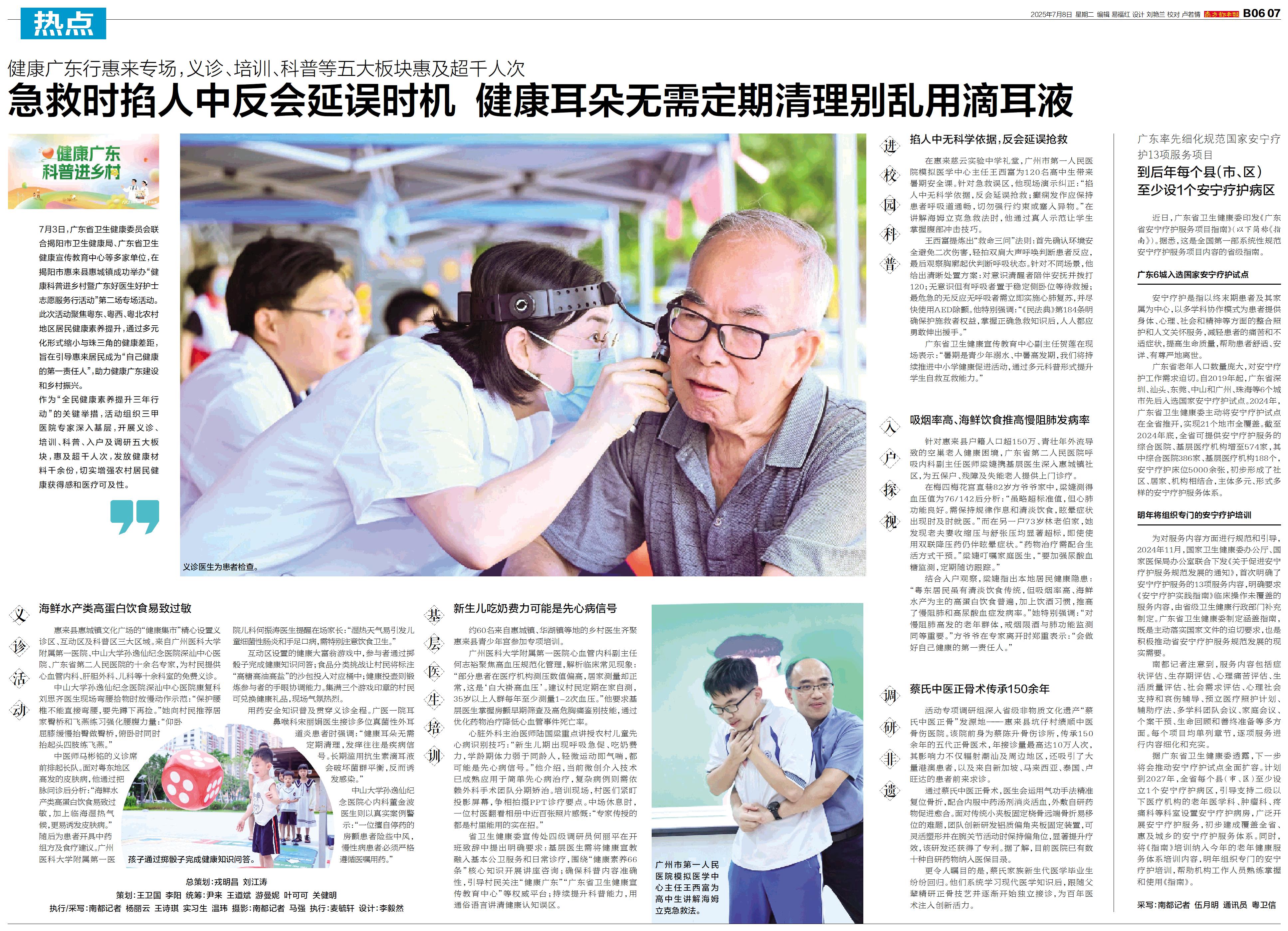 7月3日,广东省卫生健康委员会联合揭阳市卫生健康局、广东省卫生健康宣传教育中心等多家单位,在揭阳市惠来县惠城镇成功举办“健康科普进乡村暨广东好医生好护士志愿服务行活动”第二场专场活动。 此次活动