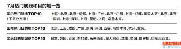 截至7月2日,航旅纵横大数据显示,7月国内航线机票预订量超2101万张,同比去年有所增长;出入境航线机票预订量超543万张,同比去年增长约10%。暑运期间各航空公司纷纷新增、加密航线。南方航空计划新开、加密北京大兴至长白山、西宁、阿勒泰、伊宁、阿克苏等暑期旅游航线,在北京大兴执行国内航线达55条,每周投入航班量超2300班次。国际及地区航线方面,南航于6月16日起新开北京大兴—杜尚别直飞航线,7月1日起新开哈尔滨—符拉迪沃斯托克(海参崴)直飞航线。与此同时,南航在中西亚、东南亚、澳洲等热门航线上进一步加密航班,为暑运旺季期间旅客出境游提供更多选择和便利。