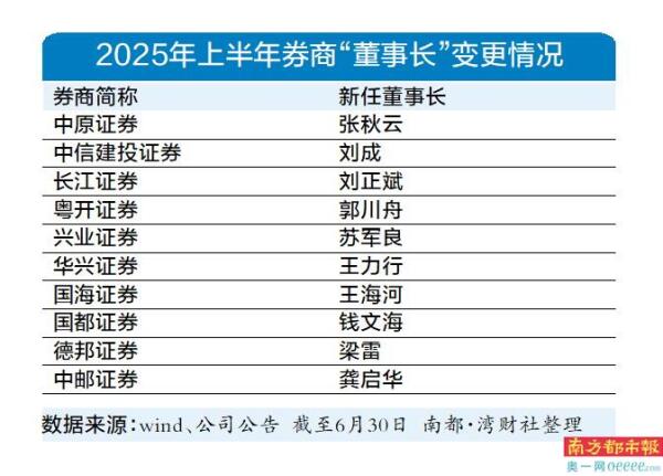 南都湾财社通过梳理发现,在2025年上半年共有10家券商发生了“董事长”一职的变动。其中,就包括了头部券商的中信建投证券,以及在业内颇具影响力的长江证券。