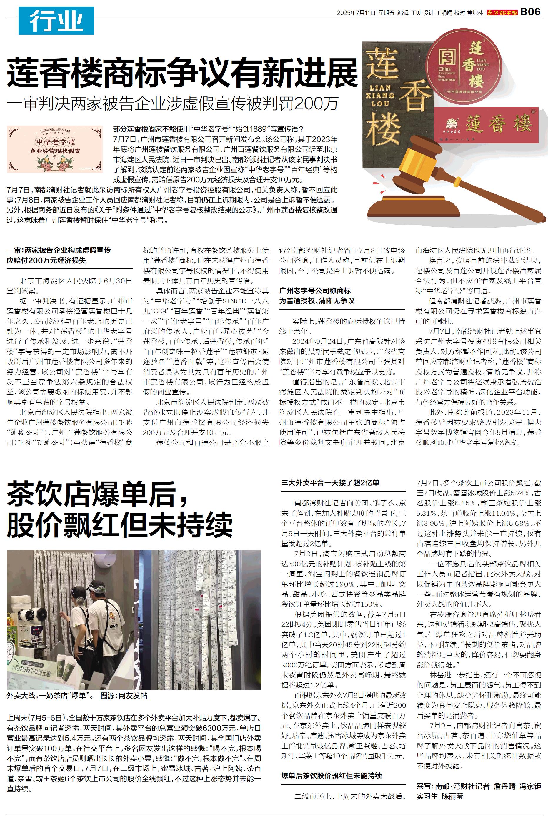 部分莲香楼酒家不能使用“中华老字号”“始创1889”等宣传语? 7月7日,广州市莲香楼有限公司召开新闻发布会。该公司称,其于2023年年底将广州莲楼餐饮服务有限公司、广州百莲餐饮服务有限公司诉至