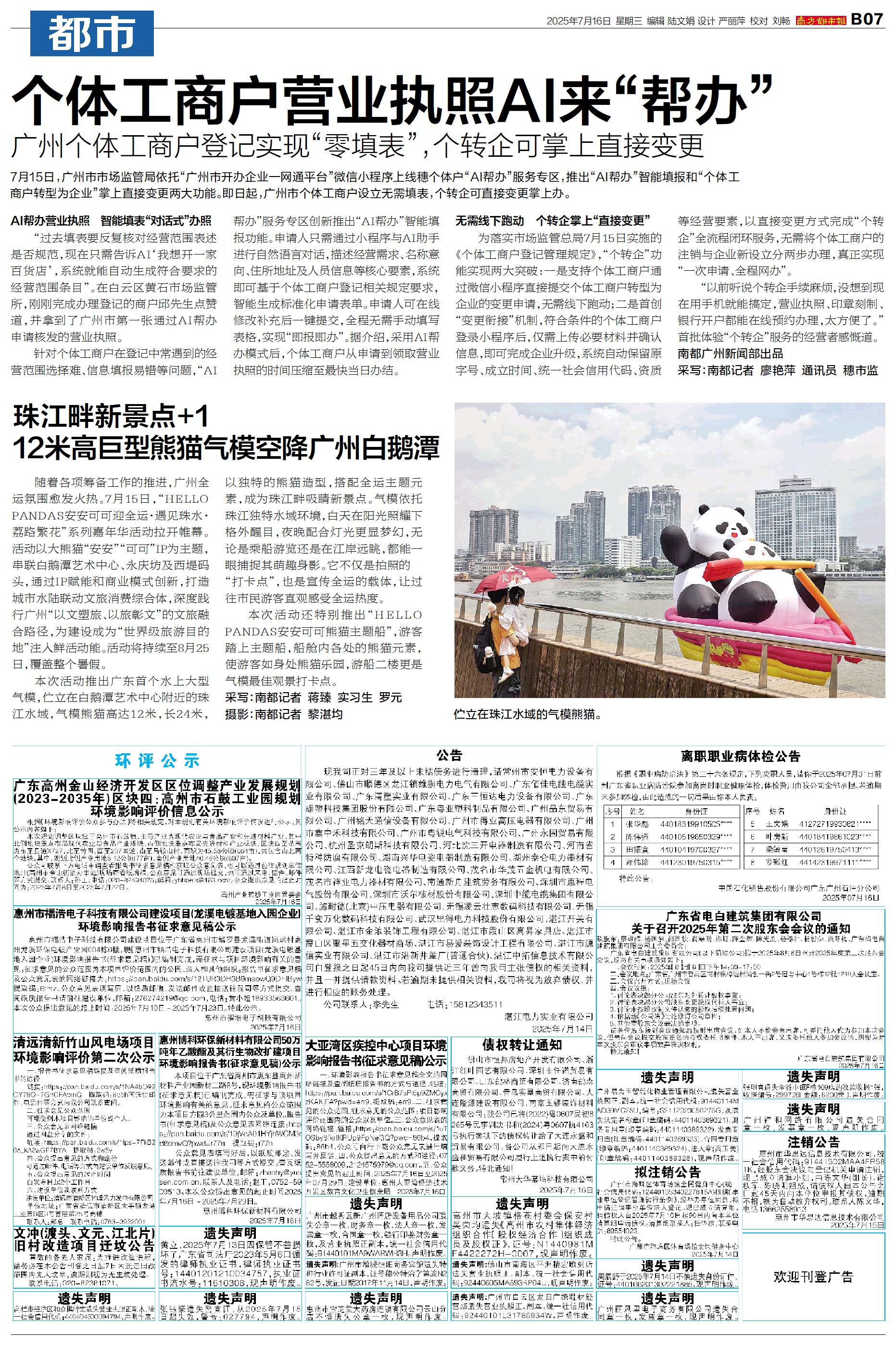 7月15日,广州市市场监管局依托“广州市开办企业一网通平台”微信小程序上线穗个体户“AI帮办”服务专区,推出“AI帮办”智能填报和“个体工商户转型为企业”掌上直接变更两大功能。即日起,广州市个体工商户设立无需填表,个转企可直接变更掌上办。