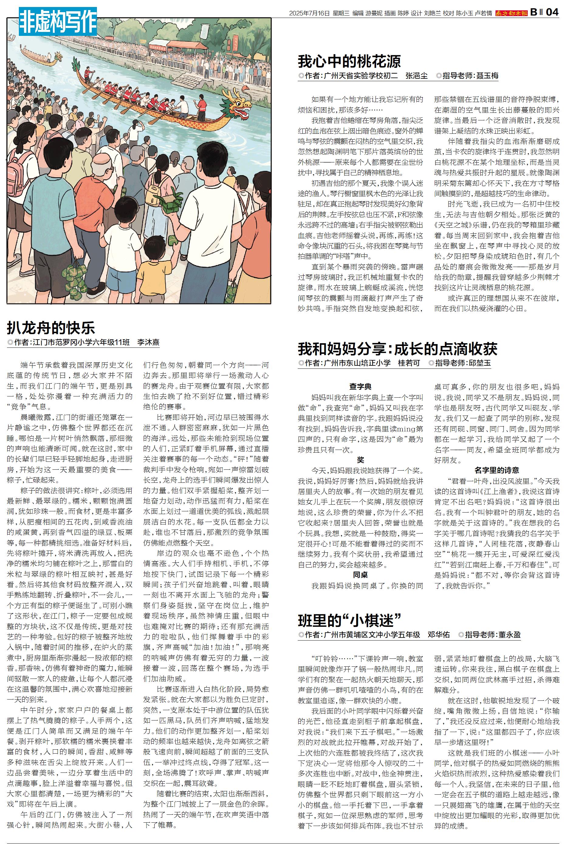 我跟妈妈说换同桌了。你换的同桌可真多,你的朋友也很多吧,妈妈说。我说,同学又不是朋友。妈妈说,同学也是朋友呀,古代同学又叫砚友、学友。我们又一起查了同学的别称,发现还有同砚、同窗、同门、同舍。因为同学都在一起学习,我给同学又起了一个名字——同友,希望全班同学都成为好朋友。