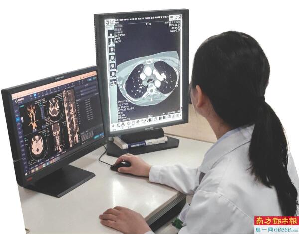 河源市和平县人民医院影像科内,医生在试用“粤医智影”系统。