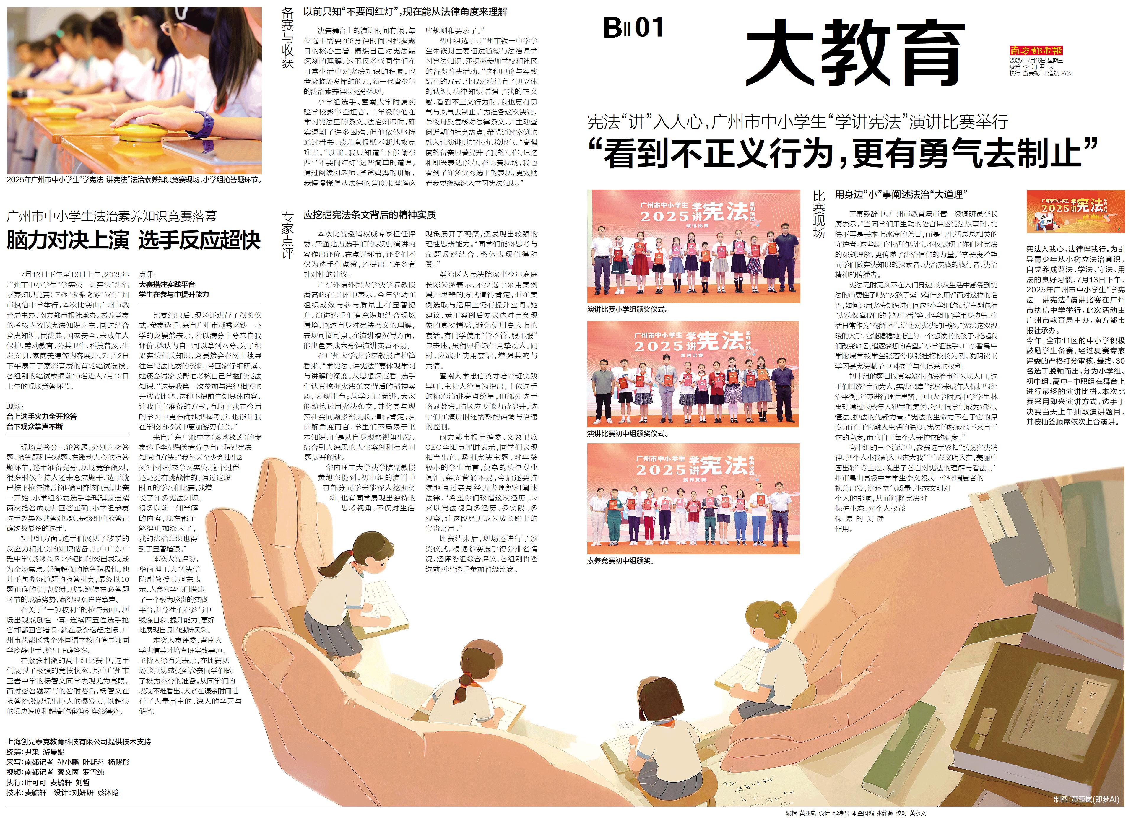 7月12日下午至13日上午,2025年广州市中小学生“学宪法 讲宪法”法治素养知识竞赛(下称“素养竞赛”)在广州市执信中学举行,本次比赛由广州市教育局主办、南方都市报社承办。素养竞赛的考核内容以宪