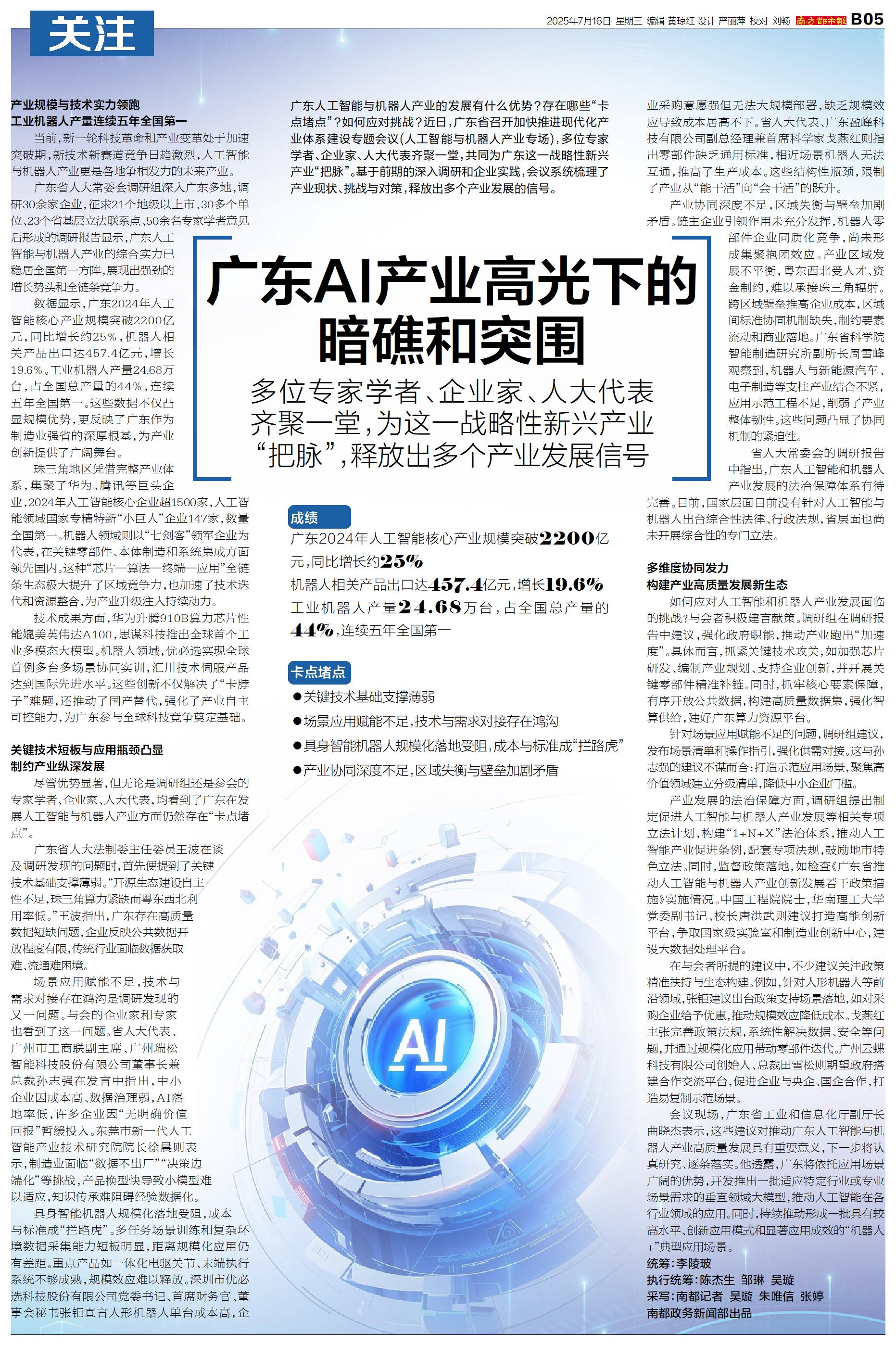 广东人工智能与机器人产业的发展有什么优势?存在哪些“卡点堵点”?如何应对挑战?近日,广东省召开加快推进现代化产业体系建设专题会议(人工智能与机器人产业专场),多位专家学者、企业家、人大代表齐聚一堂
