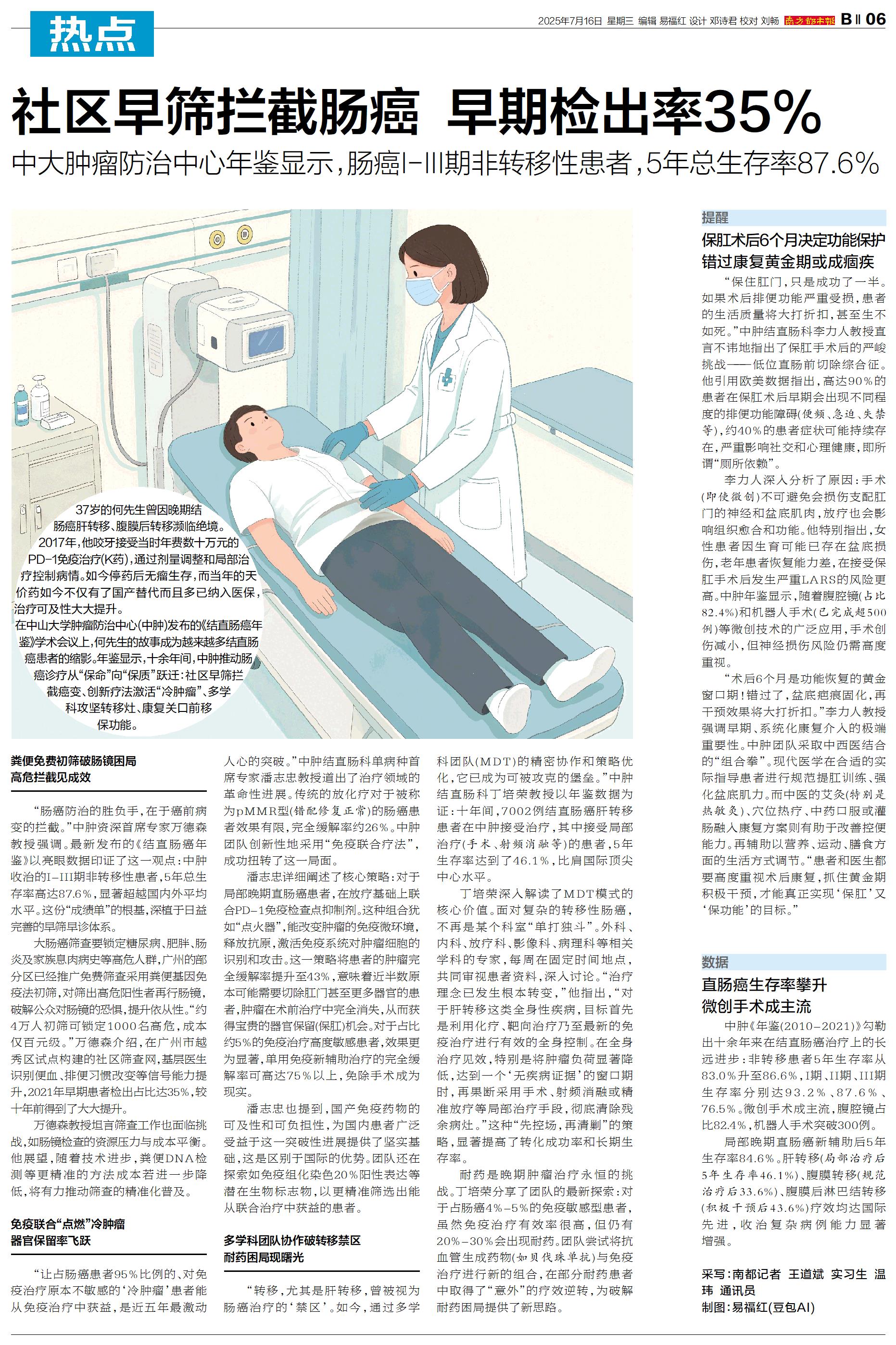 社区早筛拦截肠癌 早期检出率35%