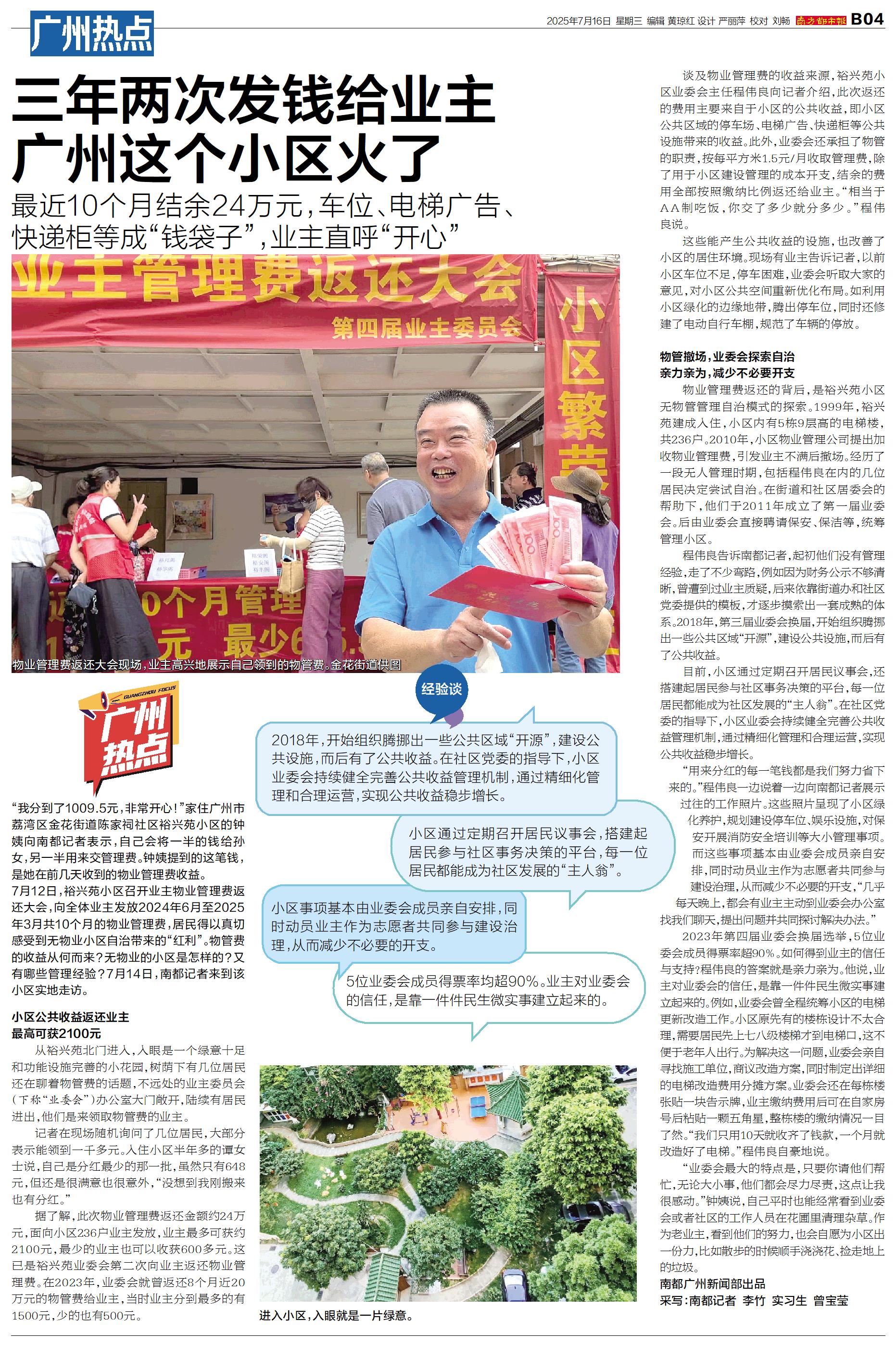 三年两次发钱给业主 广州这个小区火了