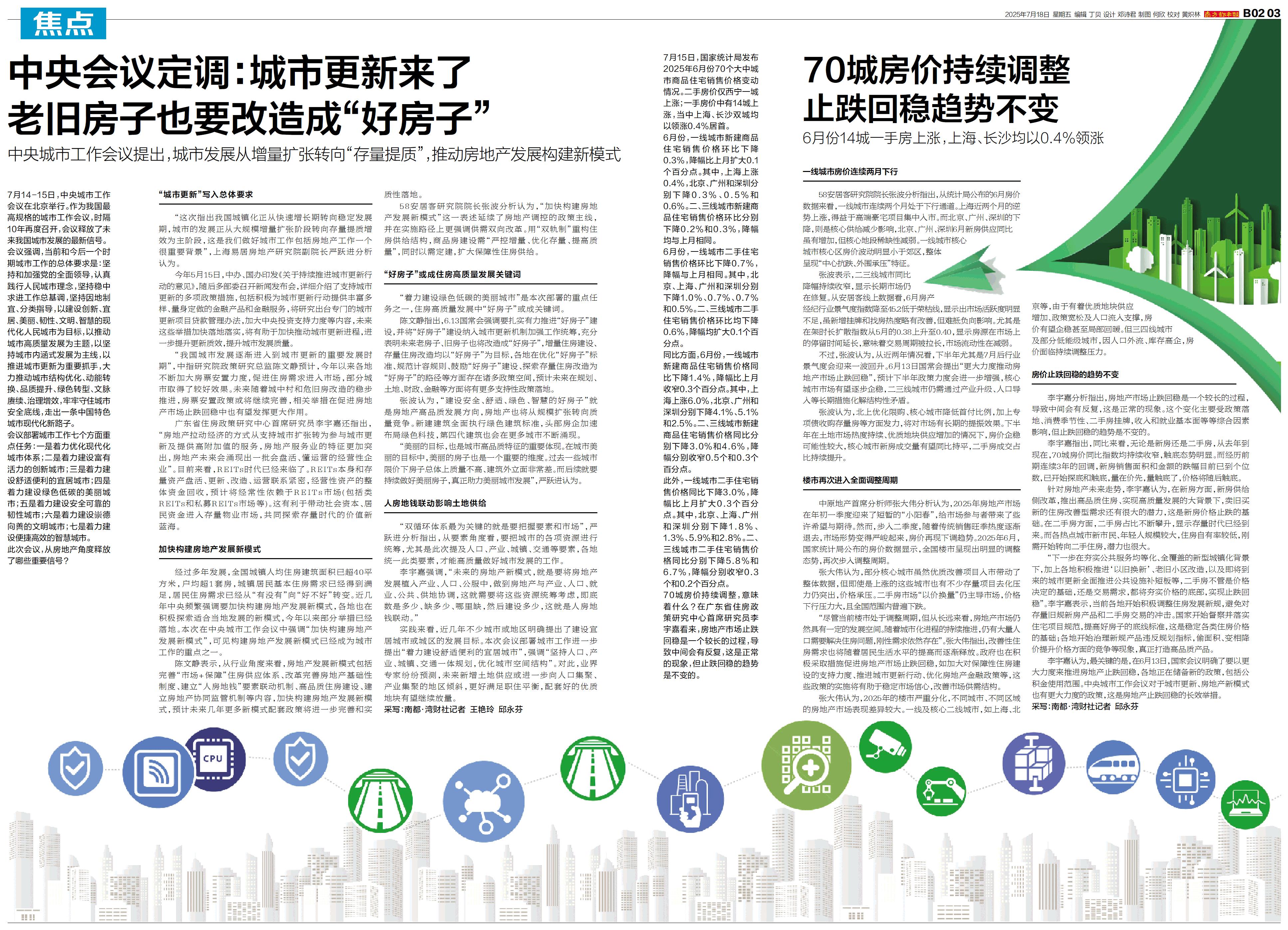 7月15日,国家统计局发布2025年6月份70个大中城市商品住宅销售价格变动情况。二手房价仅西宁一城上涨;一手房价中有14城上涨,当中上海、长沙双城均以领涨0.4%居首。