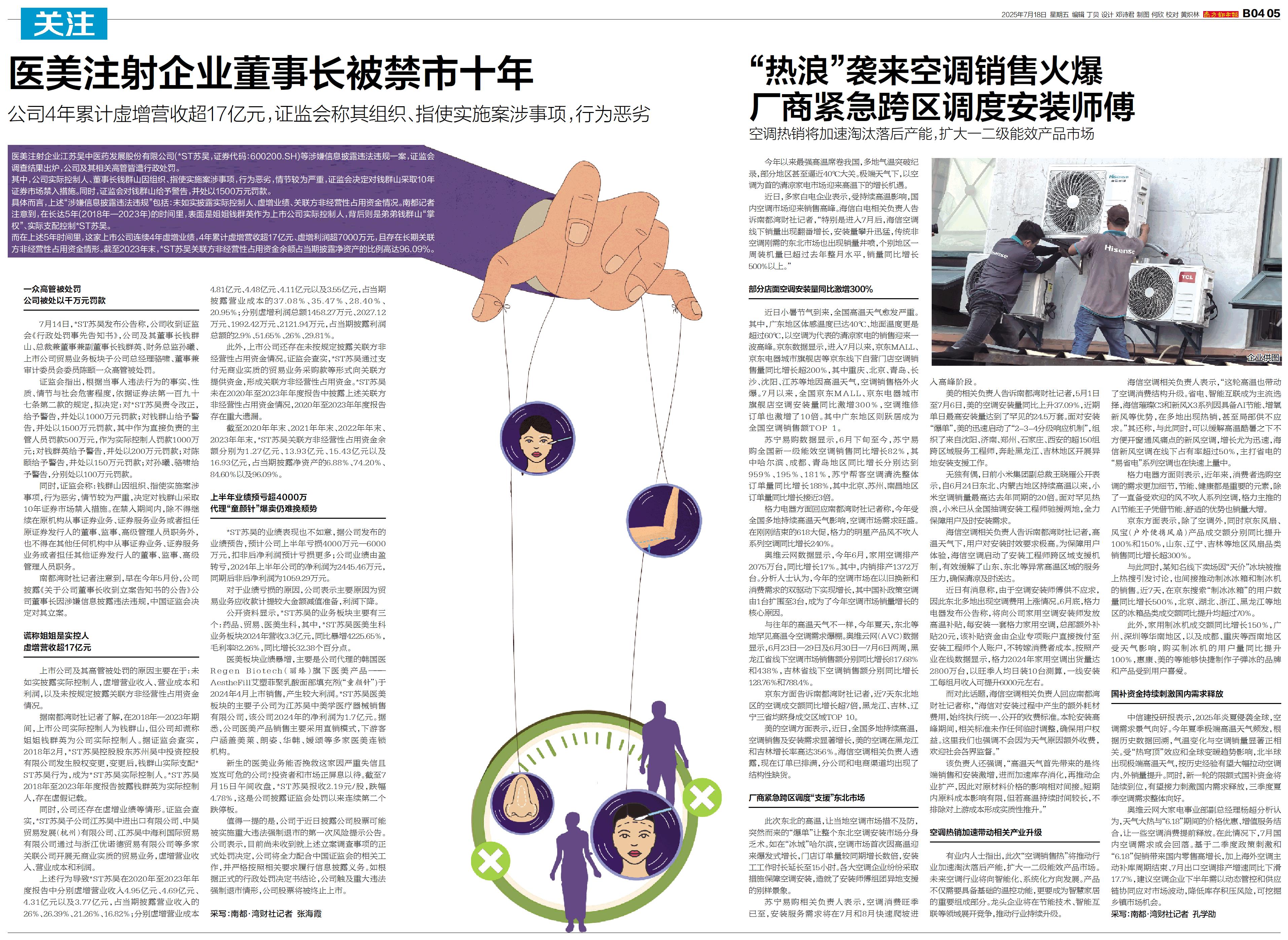 新生的医美业务能否挽救这家因严重失信且岌岌可危的公司?投资者和市场正屏息以待。截至7月15日午间收盘,*ST苏吴报收2.19元/股,跌幅4.78%,这是公司披露证监会处罚以来连续第二个跌停板。