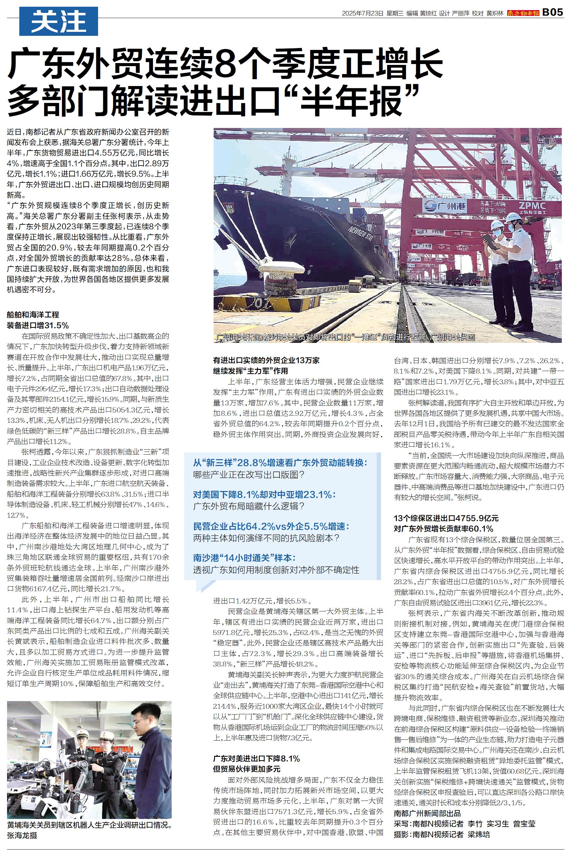 广东外贸连续8个季度正增长 多部门解读进出口“半年报”