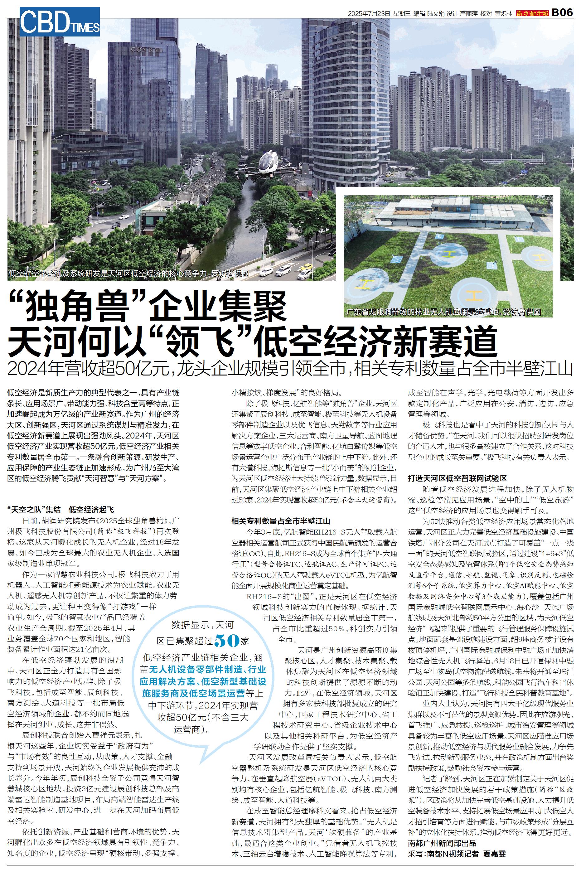 “独角兽”企业集聚 天河何以“领飞”低空经济新赛道