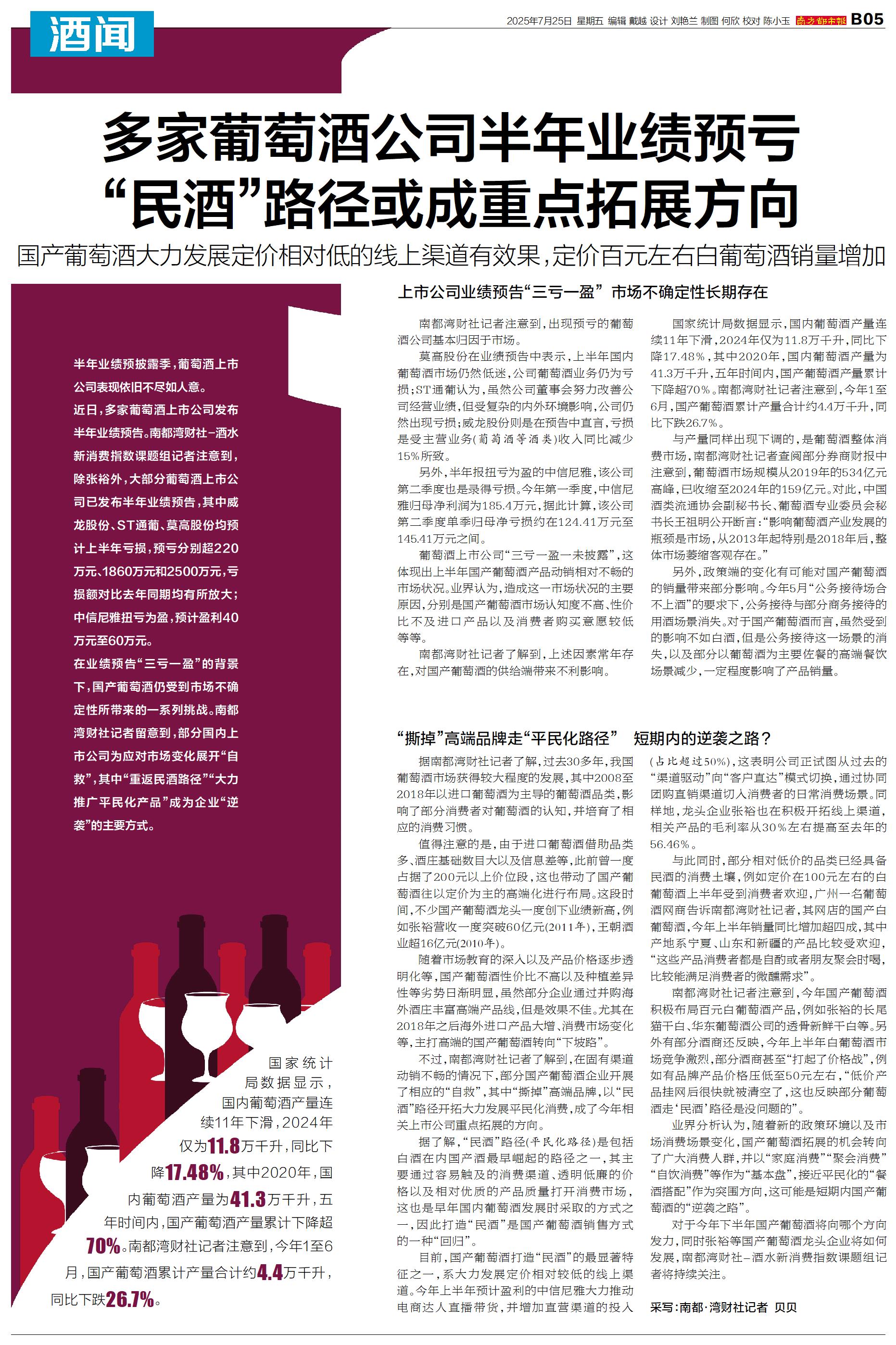 多家葡萄酒公司半年业绩预亏“民酒”路径或成重点拓展方向