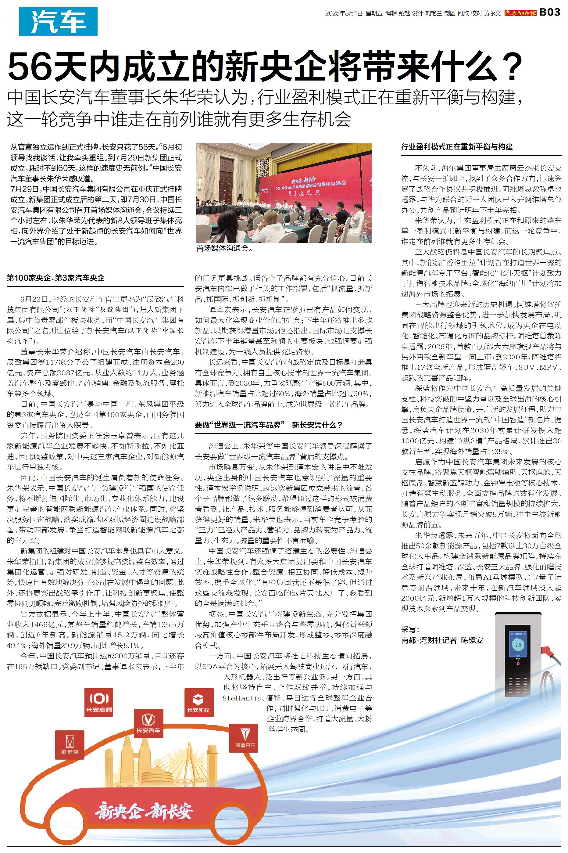 因此,中国长安汽车的诞生肩负着新的使命任务。朱华荣表示,中国长安汽车肩负建设汽车强国的使命任务,将不断打造国际化、市场化、专业化体系能力,建设更加完善的智能网联新能源汽车产业体系。同时,将坚决服务国家战略,落实成渝地区双城经济圈建设战略部署,带动西部发展,争当打造智能网联新能源汽车之都的主力军。
