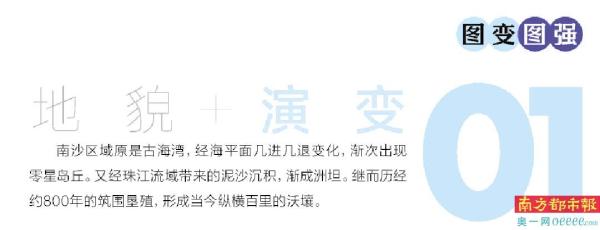南沙区域原是古海湾,经海平面几进几退的变化,渐次出现零星岛丘。后又经珠江流域带来的泥沙沉积,渐成洲坦。继而历经约800年的筑围垦殖,形成了当今纵横百里的沃壤。