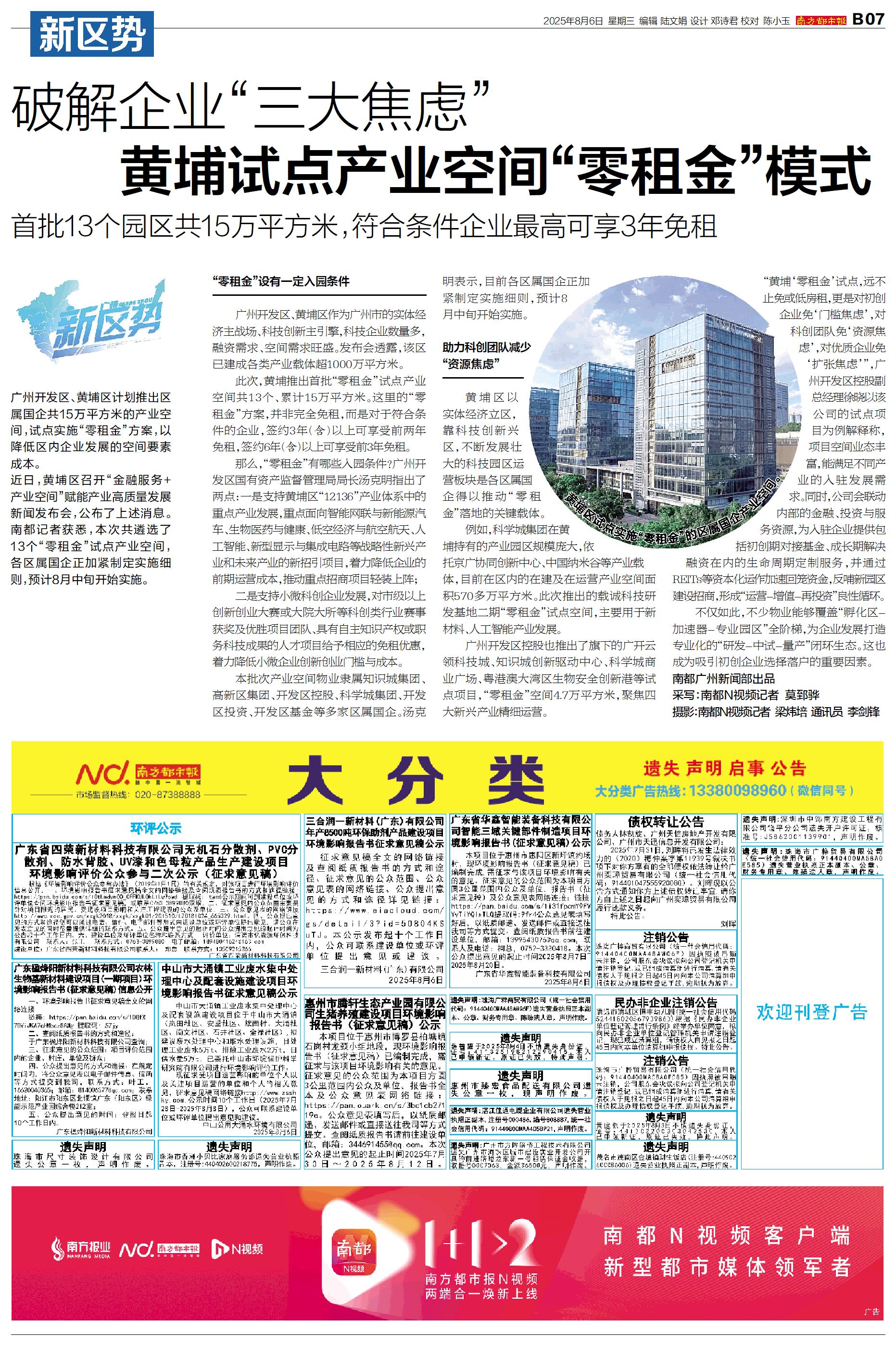 破解企业“三大焦虑” 黄埔试点产业空间“零租金”模式