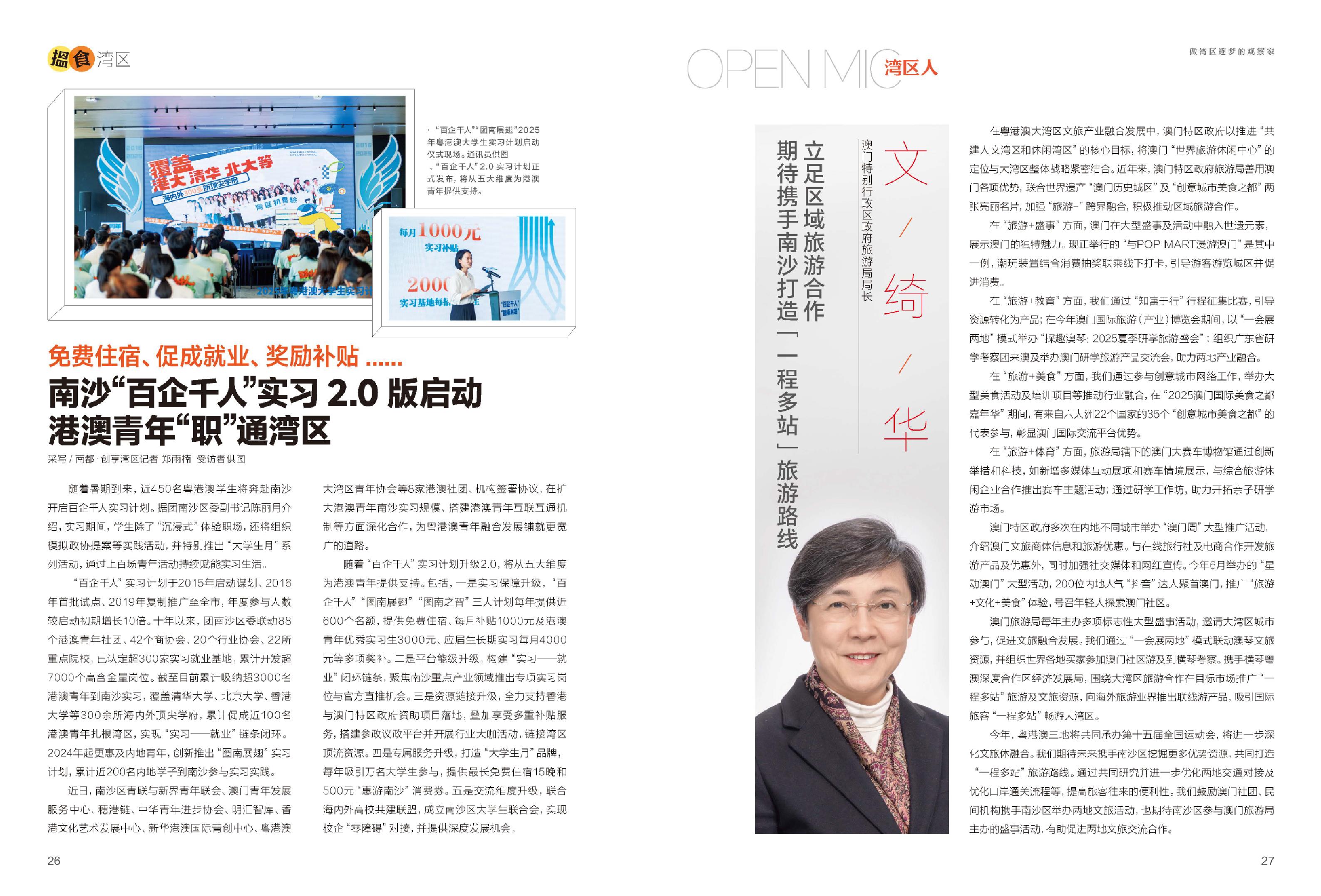 “百企千人”“图南展翅”2025年粤港澳大学生实习计划启动仪式现场。 “百企千人”2.0实习计划正式发布,将从五大维度为港澳青年提供支持。