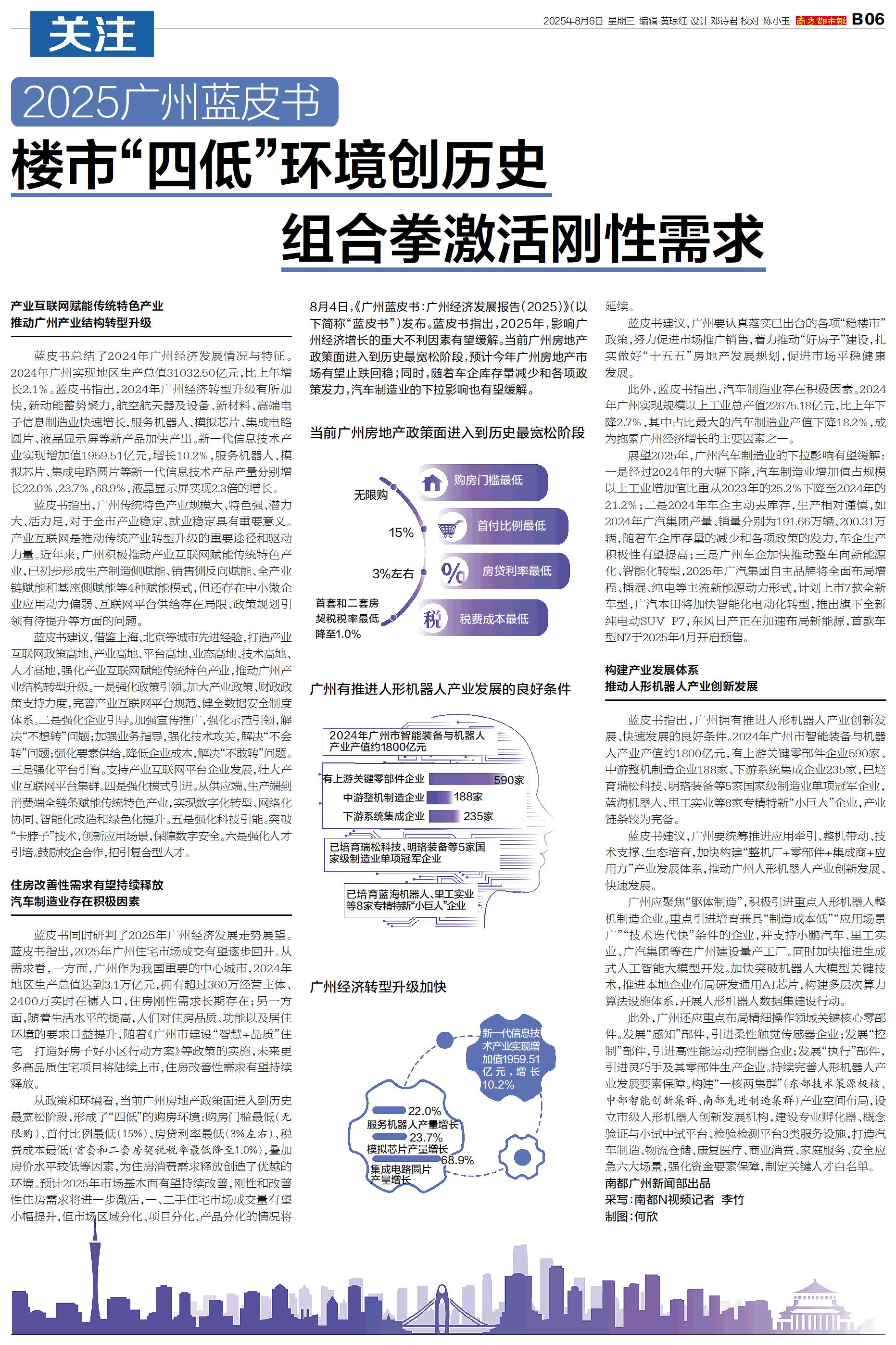 8月4日,《广州蓝皮书:广州经济发展报告(2025)》(以下简称“蓝皮书”)发布。蓝皮书指出,2025年,影响广州经济增长的重大不利因素有望缓解。当前广州房地产政策面进入到历史最宽松阶段,预计今年