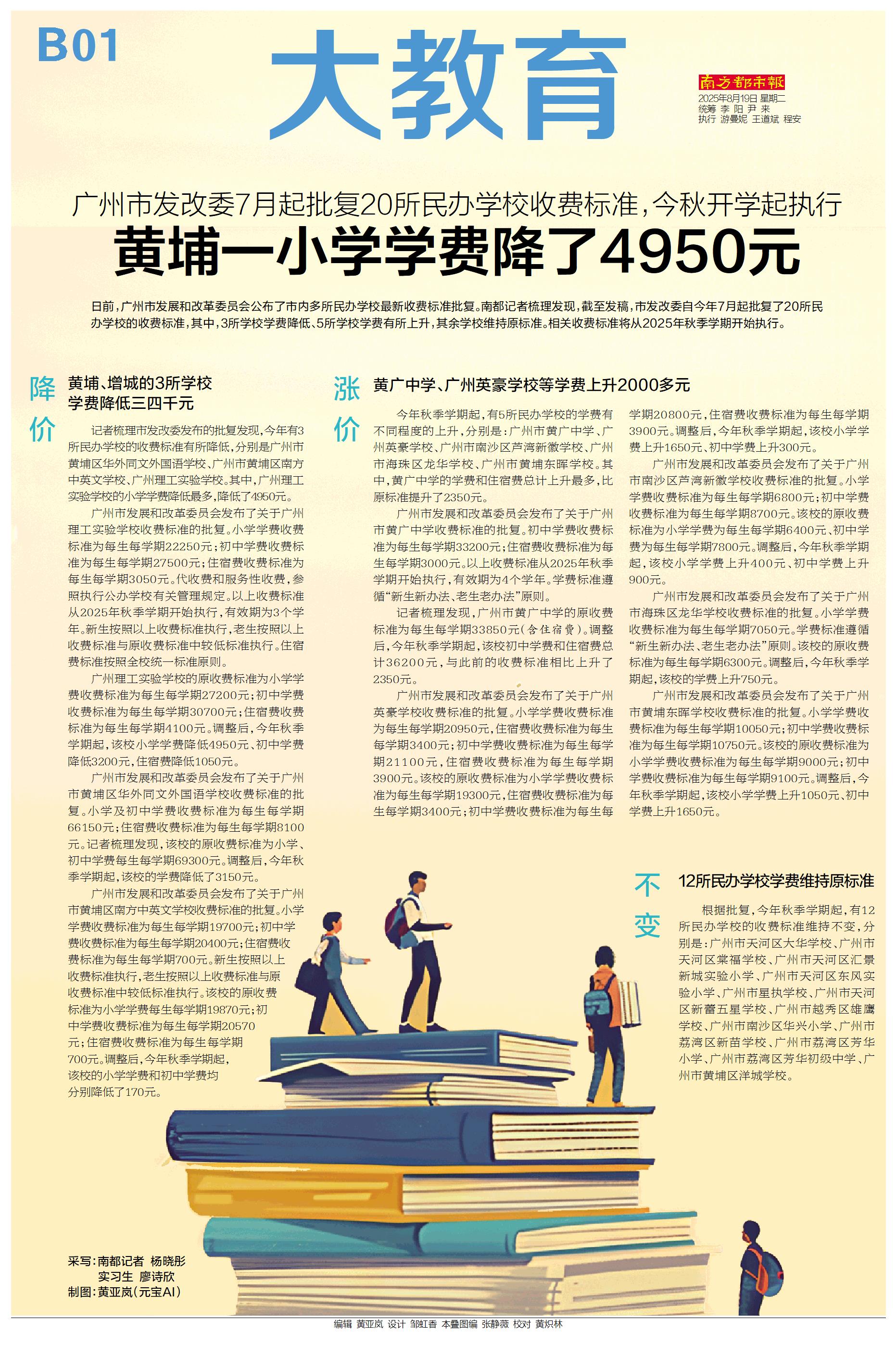 日前,广州市发展和改革委员会公布了市内多所民办学校最新收费标准批复。南都记者梳理发现,截至发稿,市发改委自今年7月起批复了20所民办学校的收费标准,其中,3所学校学费降低、5所学校学费有所上升,其