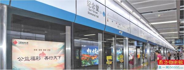 位于广州纪念堂地铁站的公益福彩灯箱广告。
