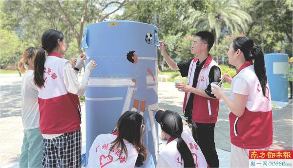 广美学生正在给柱墩进行彩绘。 受访者供图