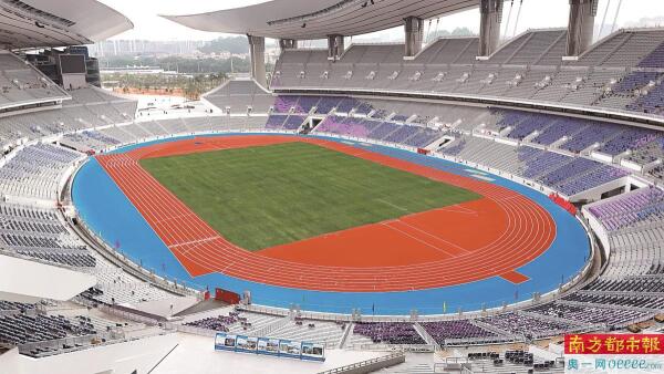 广东奥体中心的赛事级预制型橡胶跑道系统。